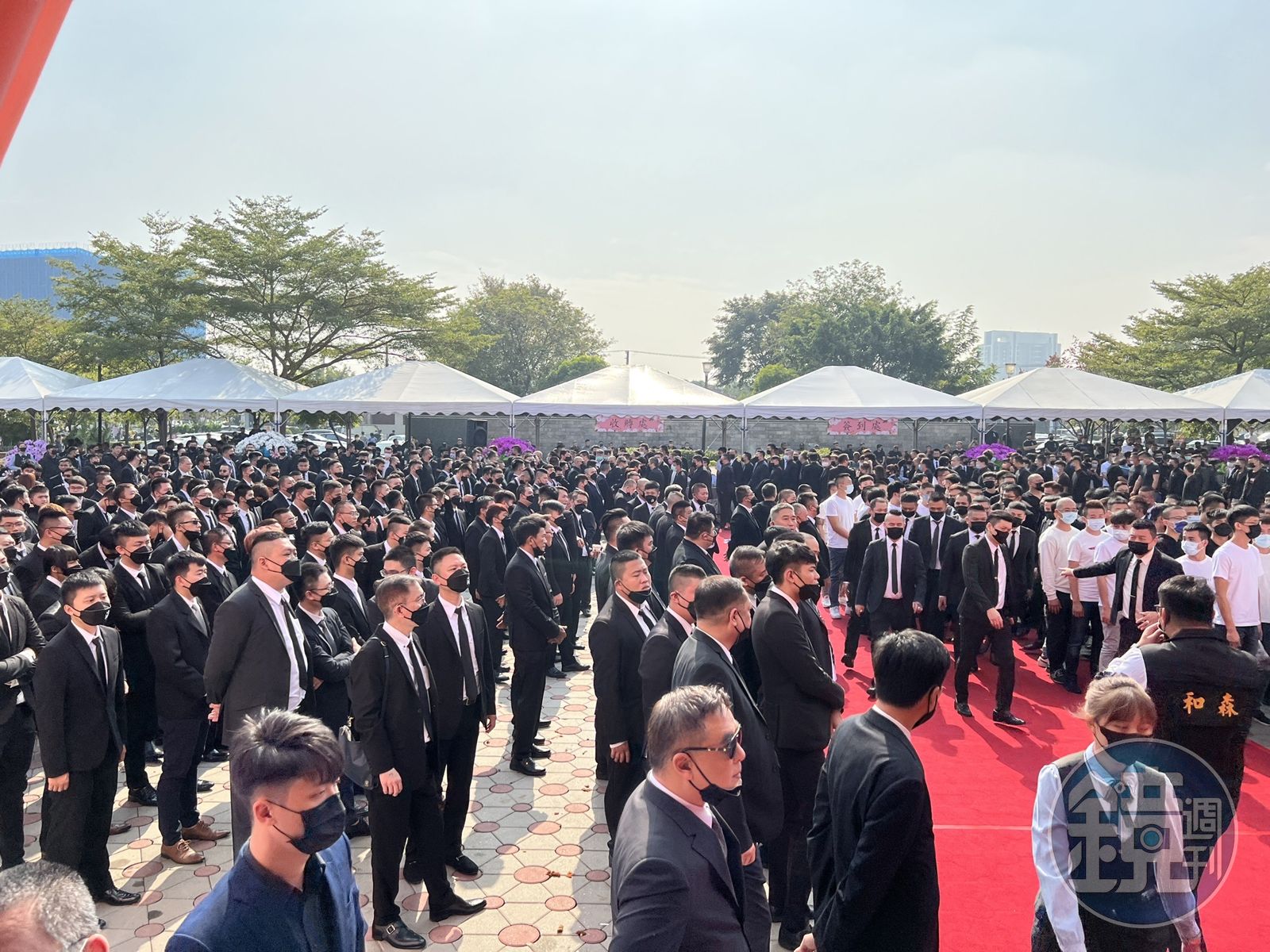 四海幫副幫主劉萬興母喪,現場約2000名黑衣人雲集。(讀者提供)發布時間:2021.12.19 10:57 臺北時間