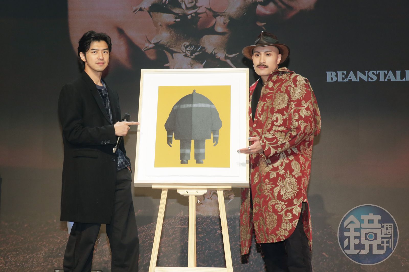 陳柏霖帶來藝術家Sablo Mikawa的畫作,黃宣一看就說:「背景是黃色,上面有巨人,太適合我了吧。」讓陳柏霖大呼:「你把我台詞都講完了。」畫中的巨人身體很大、頭很小,陳柏霖半開玩笑說:「黃宣現在肯定會越來越有人氣,希望他不忘初衷,不要有大頭症。」黃宣笑回:「自己沒有大頭症,只有光頭症。」