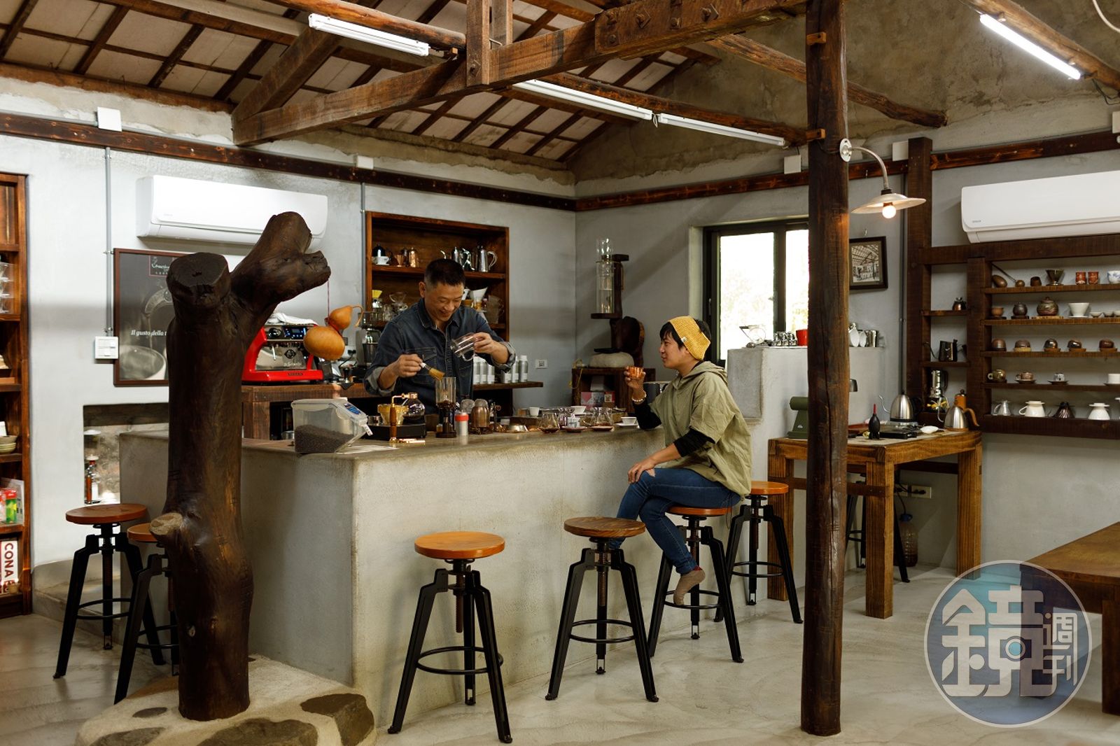 賴育正以無菜單的方式,接待預約的客人,他先從屋子的故事說起,再依照每個人的喜好選擇豆子和沖煮方式。賴育正笑說,自己當職業軍人多年,深怕講話太嚴肅,也因為過去都照命令行事,如今一頭栽入自己喜歡的咖啡,就只想隨心自在而已。