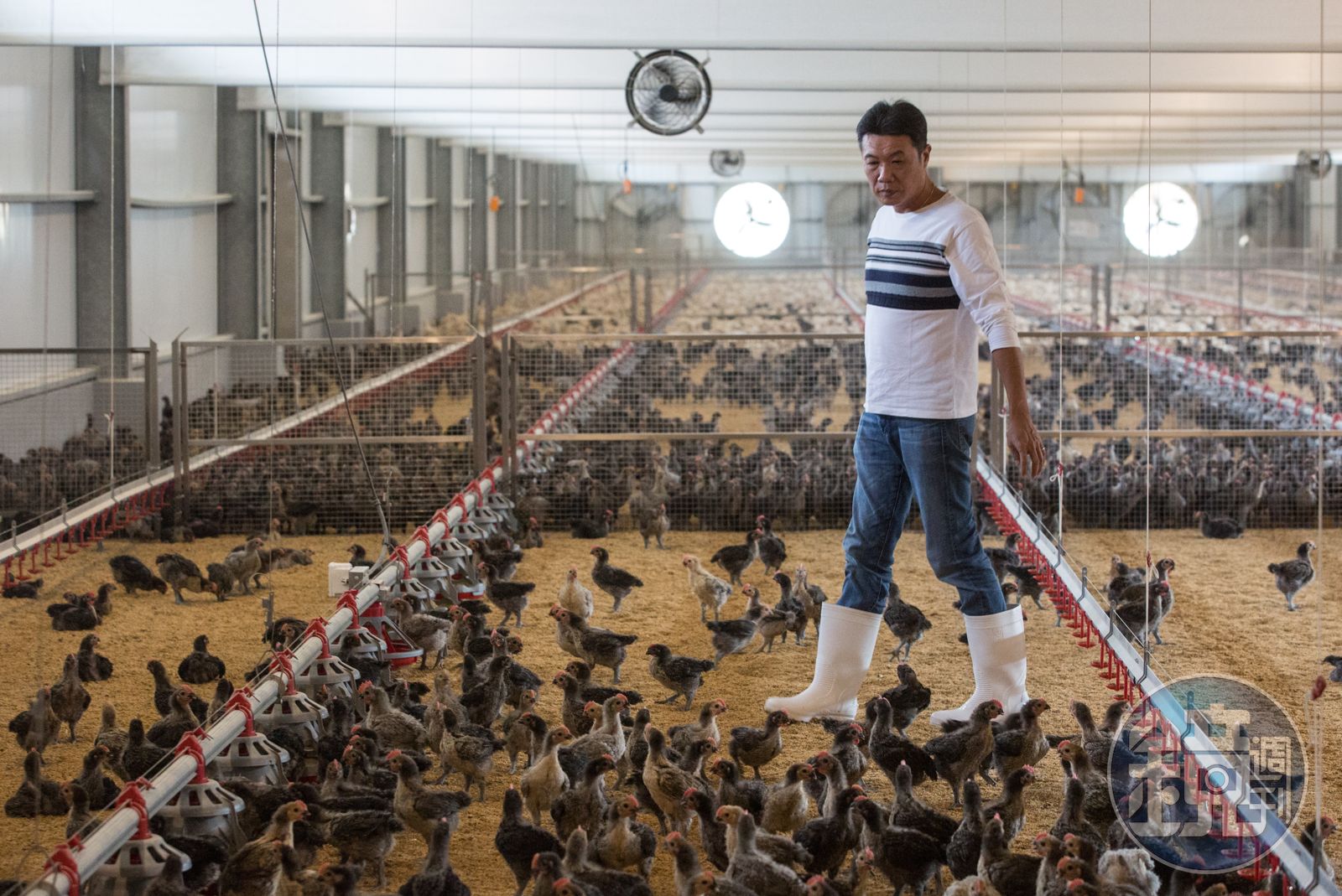 高浚泓巡視雞場,數千隻活潑好動的小雞,朝著他蜂擁而上,輕輕抱起一隻小雞,數十年日夜與雞為伍,他一眼就能掌握雞隻狀況。「雞怕冷又怕熱,牠們不像人會咳嗽,一口痰卡住就可能致死,禽流感的雞一眼就看得出來,跟人感冒一樣會流鼻涕。」高浚泓說。