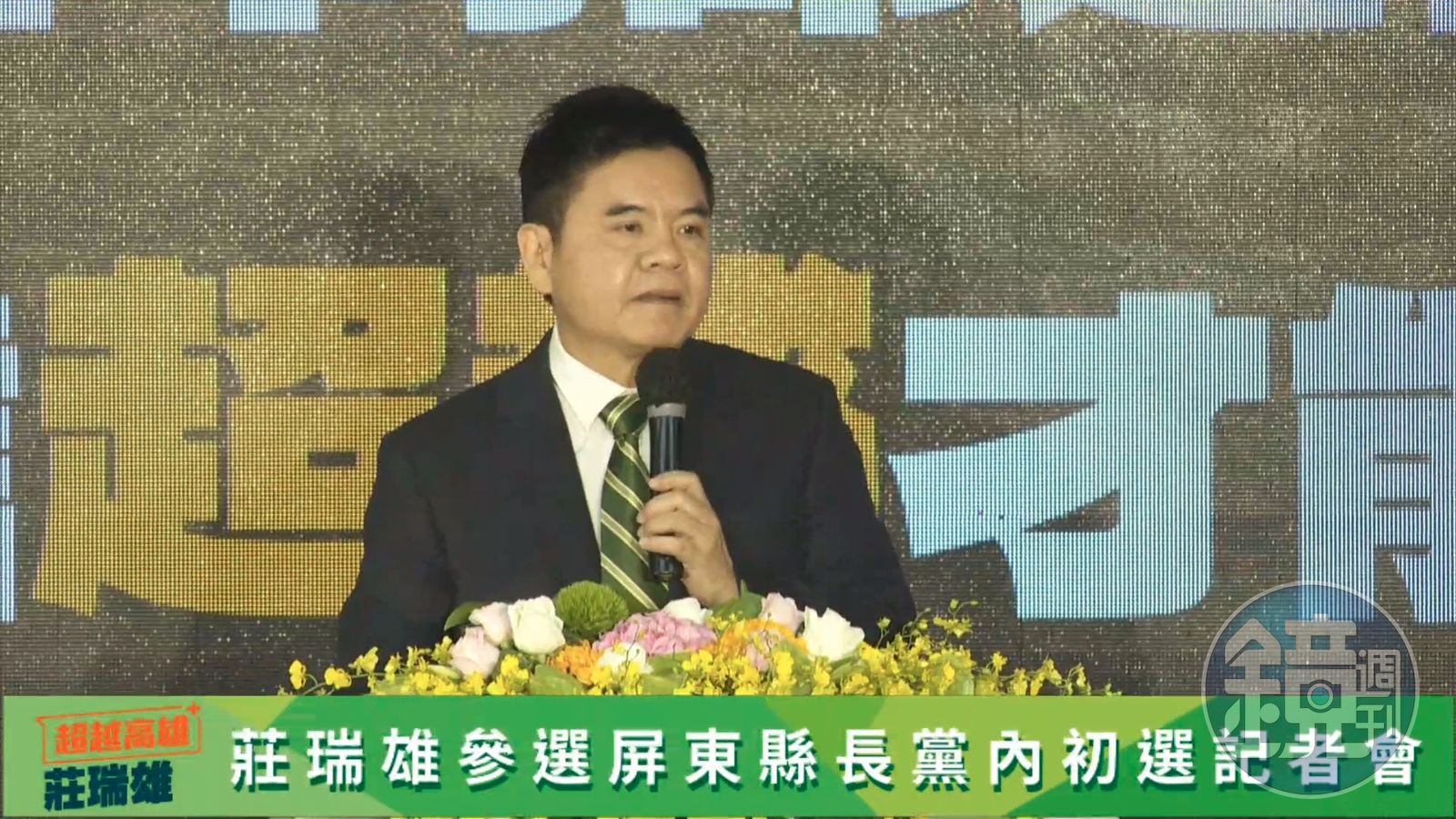 莊瑞雄今日於台大醫院國際會議中心舉辦記者會,宣布參選屏東縣長黨內初選,演說中他強調自己是屏東農家子弟,是吃屏東米、喝屏東水、種屏東地長大的,他人生命運的起點就是來自屏東這塊土地、人格特質也是源自於屏東人的精神,「永遠不向命運低頭,相信超越才能改變。」