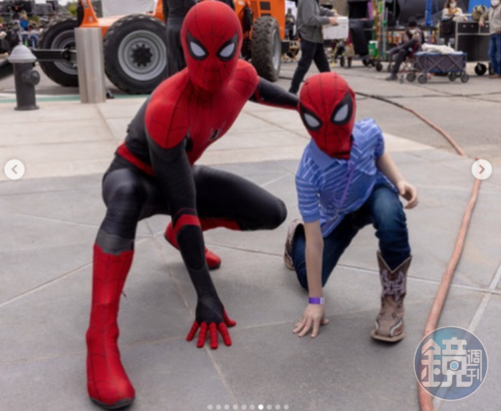 男孩布里傑的父親,日前在Instagram發文,表示當初湯姆霍蘭德承諾會招待他去參觀《蜘蛛人:無家日》,也真的實現了承諾。不只湯姆,還有千黛亞(Zendaya)、湯姆的弟弟哈利,以及所有工作人員都在現場歡迎這位小英雄。湯姆不僅是在銀幕上扮演鄰居的英雄蜘蛛人,現實中也是如此,「我永遠不會忘記他們立刻跟我的小孩所展示的優雅與善良,千黛亞告訴我的女兒,誇獎她指甲非常漂亮。我不知道她是否曉得這對她意味著什麼,看到我可愛的女兒充滿了自己與快樂。我想這是因為演員與工作人員都是善良、熱情的人,他們願意停止手邊的拍攝行程,只為了讓我的小孩微笑,給他一個機會與他的英雄偶像一起擺盪。」