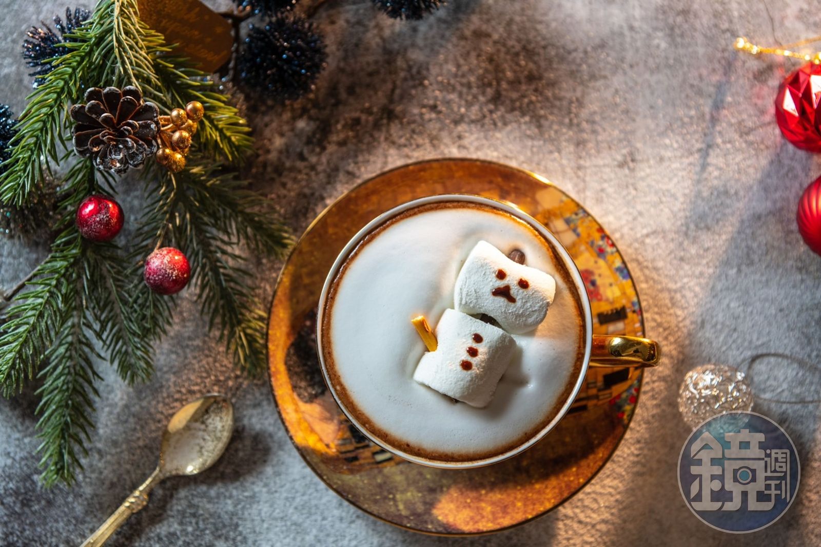 Kim端出的「雪の莓」草莓布丁讓人眼睛為之一亮,布丁當道的甜點世代,紮實厚口的雞蛋布丁較常見,雪の莓不僅彈度爆表,底部還是琴酒加茉莉花酒熬製出的草莓果凍,把整體風味錯開,帶出層次感。「雪人摩卡可可」的節日氣息濃厚,看著棉花糖雪人浸入濃郁不甜膩的可可中,日本思鄉情突然變得更明顯了些。
