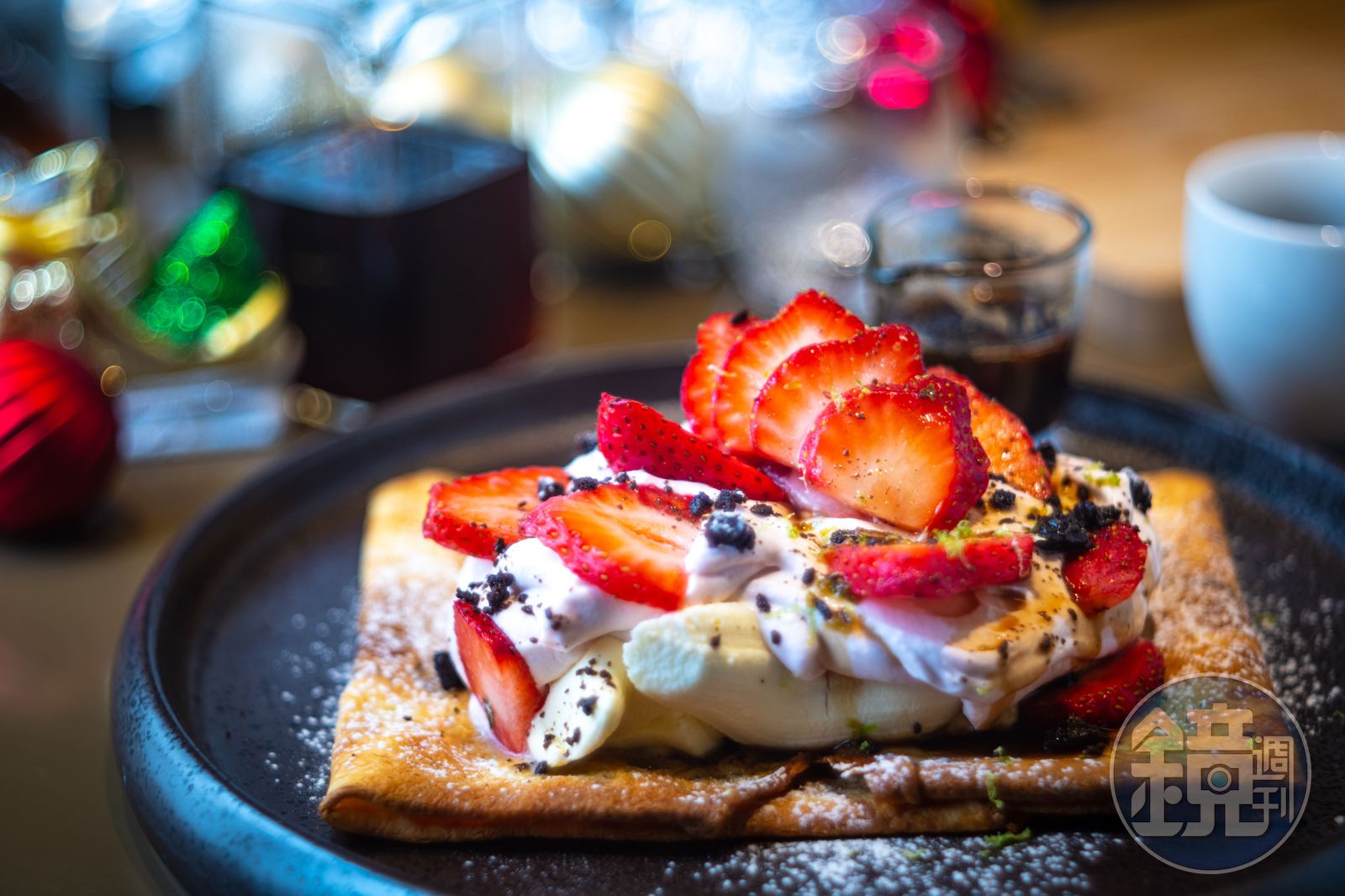 新品「大湖草莓法式可麗餅」淋上薑汁糖漿,甜蜜中帶微微辛辣感。(300元/份)發布時間:2021.12.24 11:57 臺北時間