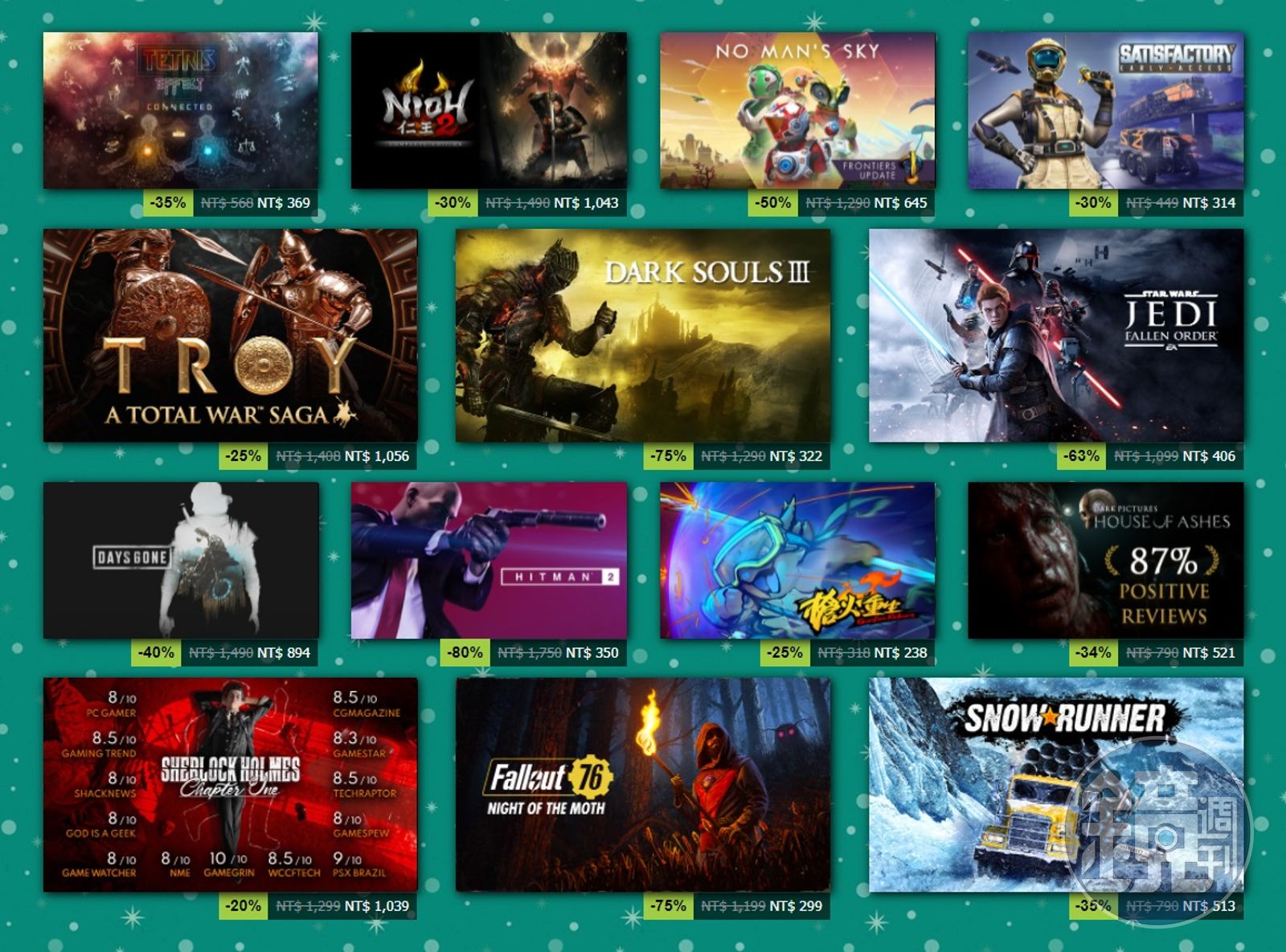 一年一度的Steam冬季特賣即日起至1月6日舉行,也是本年度最後的特賣活動,暢銷作品如《地平線 黎明時分》《電馭叛客2077》《死亡循環》《八方旅人》皆降至5折;《死亡擱淺》《真人快打11終極版》下探3折;上月才推出的《侏羅紀世界:進化 2》也祭出首次特惠的7折價。