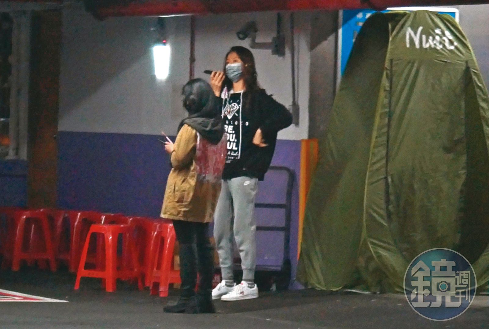 稍晚劇組正式開拍,工作人員四處巡查可疑車輛,之後一輛看來是道具的警車開上頂樓。沒多久,吳慷仁也開著大改過的車獨自現身,在劇組人員指引下停妥車後,便往更衣區走去。製作單位在周邊上上下下盯得滴水不漏,幾乎無法窺得拍攝過程。