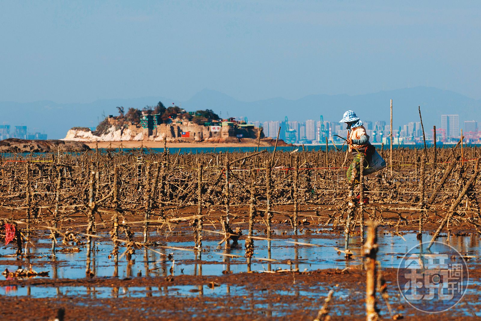 對烈嶼居民來說,每日搭船往返各地,是再稀鬆不過的日常。想念海的時候,只需騎車1分鐘就能看見,淺灘上是一片片以海為田的石蚵,背景則是大退潮時,彷彿步行就能走到的廈門。