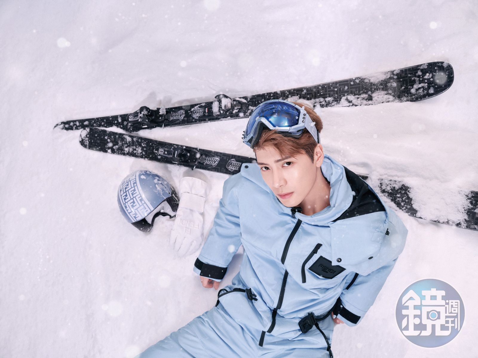 王嘉爾身穿的冰藍色防水防風滑雪服以低調方式呈現FF logo,當服裝遇水時,原本不著痕跡的FF logo會清晰顯現。發布時間:2021.12.26 22:47 臺北時間