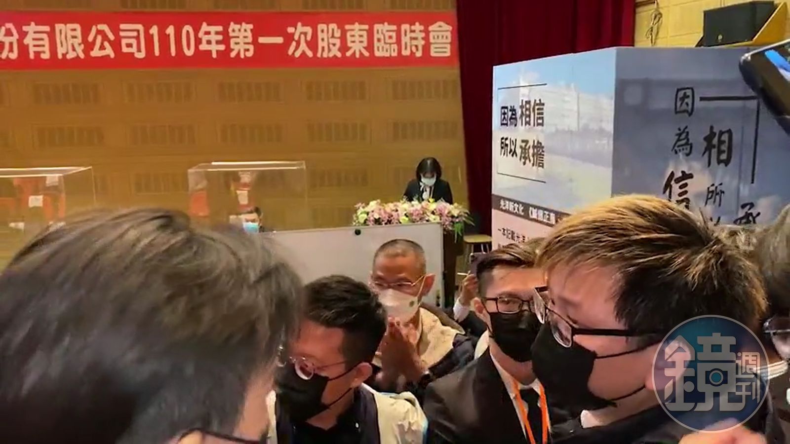 台南執行法院27日到場後宣布,禁止召開臨股會,但股東仍舊完成報到程序,在場股東透露,「法院在現場制止召開臨股會,多次要吳董(吳昌伯)停止,但吳董都沒理會,就連集保中心要發言,都被現場人員擾亂,後來吳董才決定延期到1月3日。」