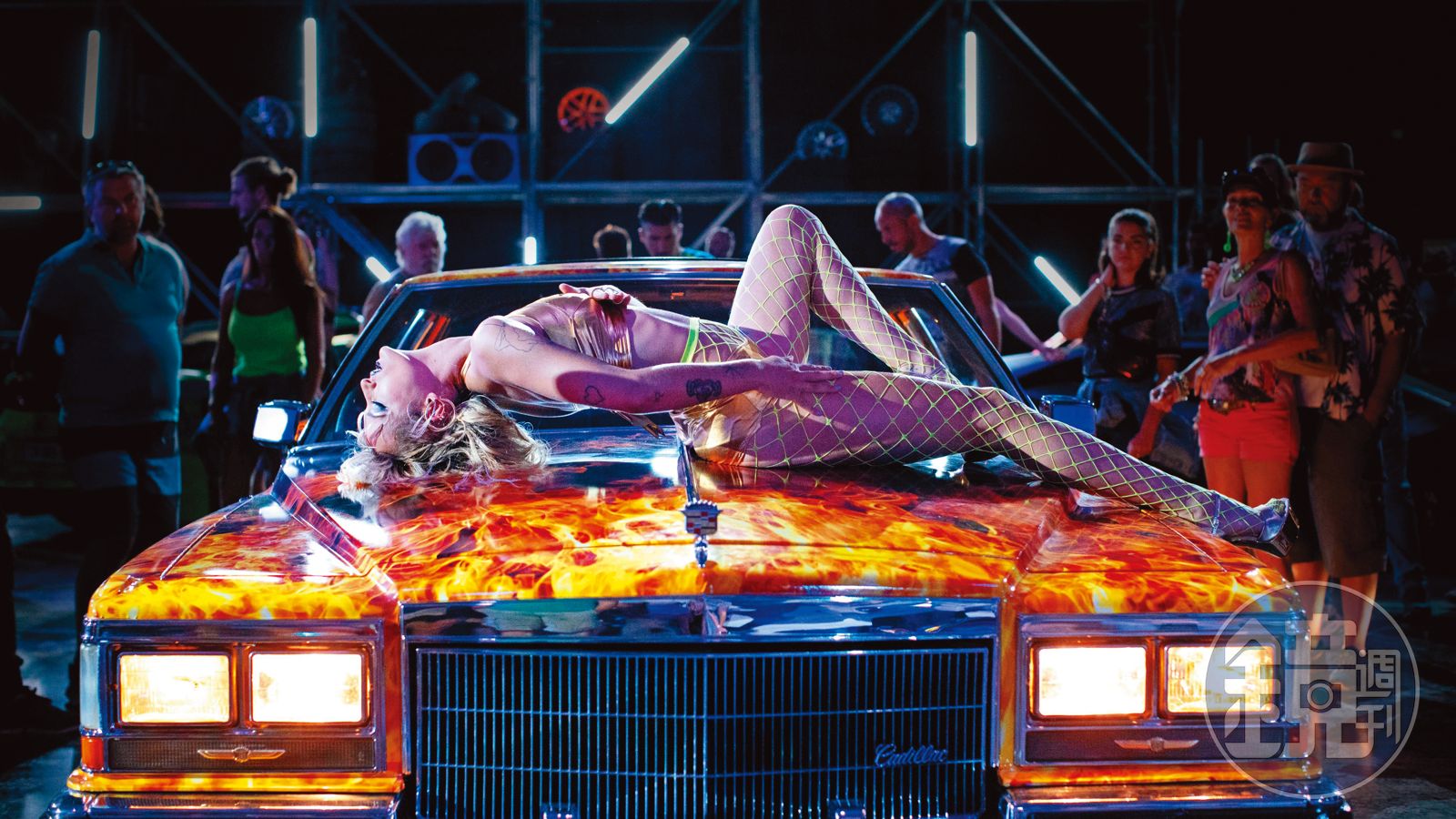 然而沒有鋪墊的連場殺戮,讓她好比阿莫多瓦的《鬥牛士》。她以長針、鐵鍬、甚至椅腳取人性命,縱火殺親後為了逃罪又假扮消防隊長失蹤多年的兒子。從「插入」別人身體到男女身分的置換,導演以極其弔詭的安排翻攪性別規範。與此同時,她的肚子還默默隆起,身體流出的不是體液或鮮血,而是宛如液態金屬的油狀物。而與其相濡以沫的消防隊長恐懼身體老化,不斷以針筒注射(插入)自己,又讓這部「性」味盎然的電影沾染了科幻及通俗劇色彩。
