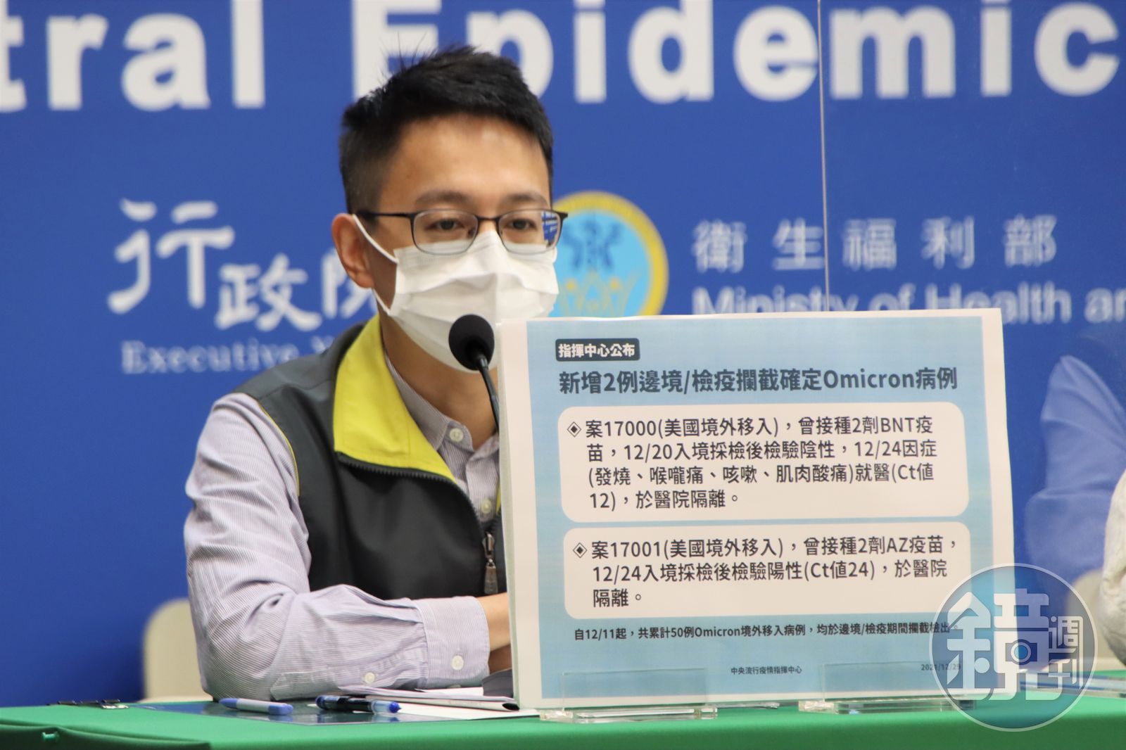 針對最新基因定序結果,羅一鈞也特別補充說明,強調今天再度攔截到2例Omicron確診者,2人都來自美國,分別接種過2劑BNT疫苗及2劑AZ疫苗,研判都屬於「突破性感染」。