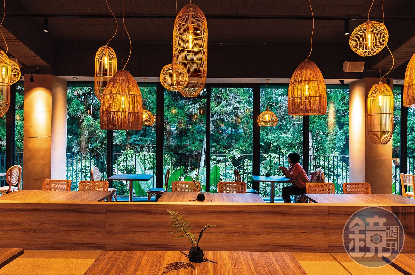 溪頭園區海拔大約1千公尺,終年雲霧繚繞,餐廳後方被一片高大挺拔的台灣杉圍繞,因此刻意保留大面窗戶,引入綠意與自然光影,隨著天候變化,時而晴朗明亮、時而濃霧禪意。此外,室內空間也大量採用國產木材,成為一大設計亮點。雲杉自助餐的天花板便以交錯木條延伸出開闊感,木質感地板、餐檯、仿真竹燈和苔球,營造出自然的舒適感,光是坐在這裡賞景、享用豐富早餐,就是一種令人放鬆的體驗。