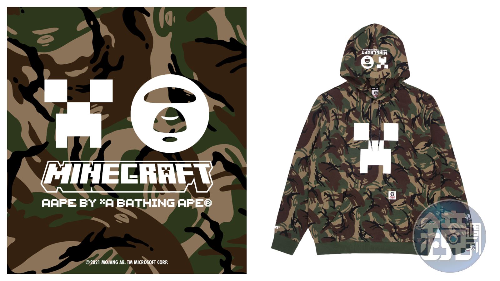 AAPE首度攜手遊戲《當個創世神》MINECRAFT,推出AAPE × MINECRAFT《當個創世神》聯名系列。連帽迷彩衛衣 NT$5,759 AAPE BY A BATHING APE® × MINECRAFT。(AAPE提供)發布時間:2022.01.02 15:44 臺北時間