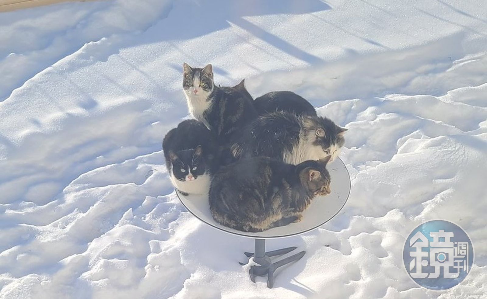 只是開啟融雪模式後訊號卻變得卡卡的,好奇的屋主便去屋外查看天線的狀況,結果發現周圍的積雪是融化了,但天線上頭卻擠著5隻貓咪,疑似受到融雪模式產生的熱能吸引,全都聚在一塊取暖,可愛的畫面讓他忍不住分享在推特上。