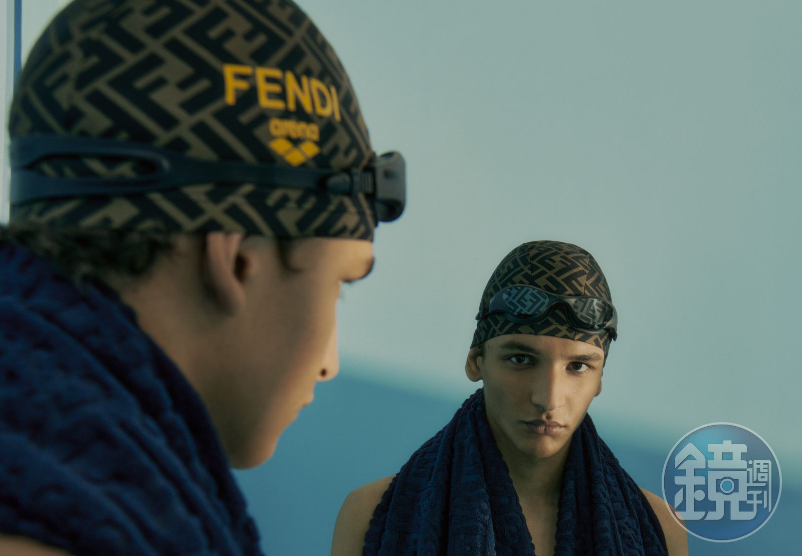 FENDI x arena限量版泳帽和蛙鏡,是在FENDI 2022春夏男裝秀場上亮相的新合作。(FENDI提供)發布時間:2022.01.10 14:41 臺北時間
