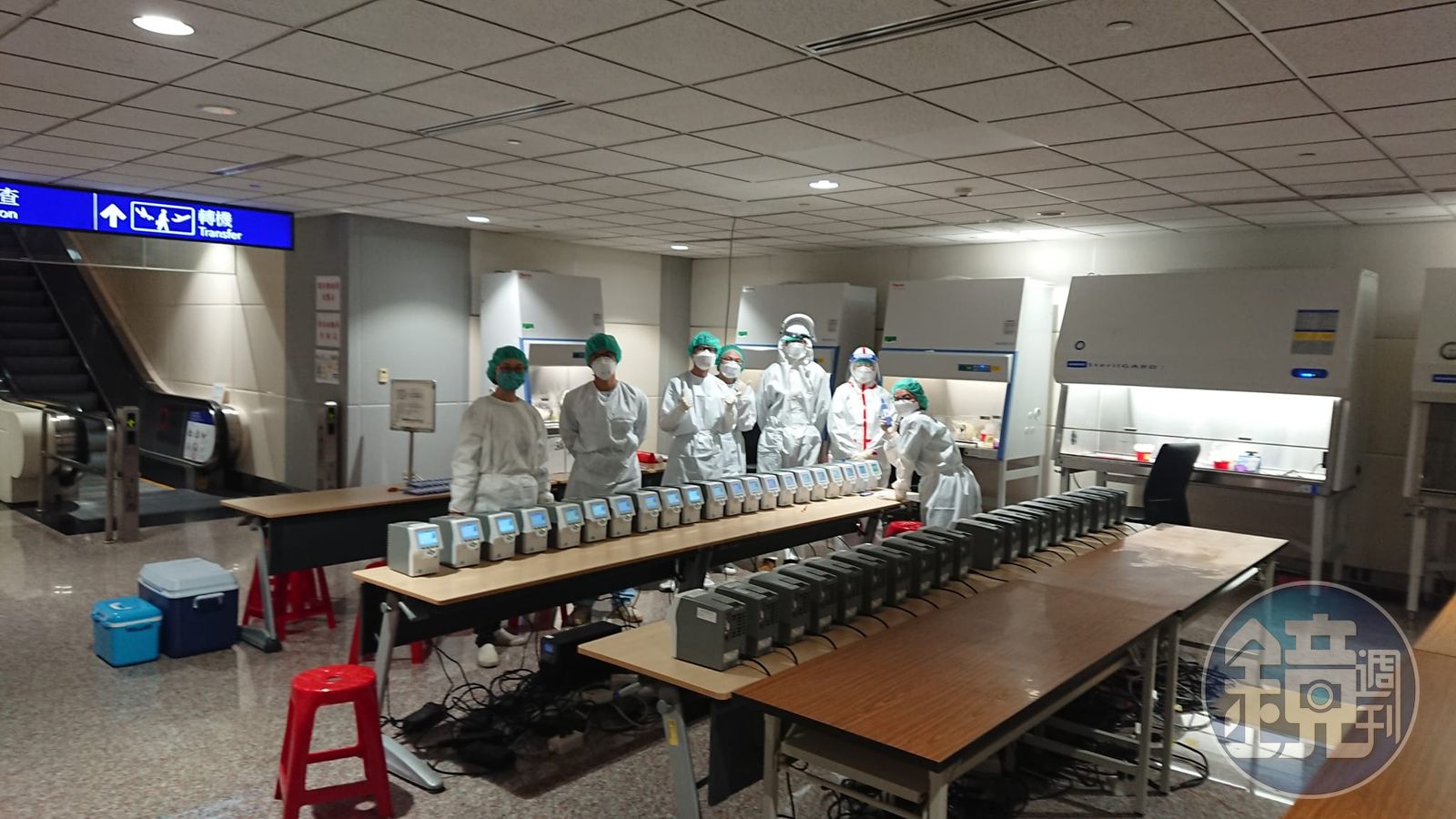 王必勝表示,檢驗量能方面,檢測儀器也從昨天的20台增加到101台,也設置好20個生物安全操作櫃來確保安全操作。檢驗也分為兩組,以因應多班飛機同時到達的狀況。