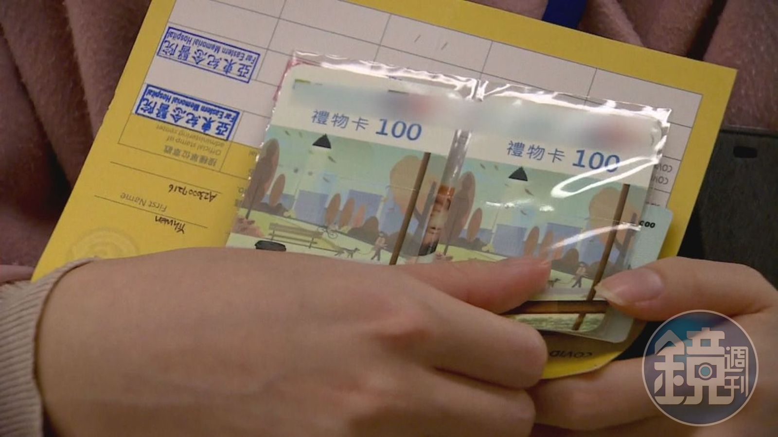 根據統計,1月5日到11日新北市累積發放超過2萬3千份的200元禮劵,台北市則是發出6萬張商品卡,隨著接種站陸續增設,禮券更加供不應求,民眾如果當下沒領到,只要憑健保卡和小黃卡,回到原接種單位就可以補領,不用擔心。