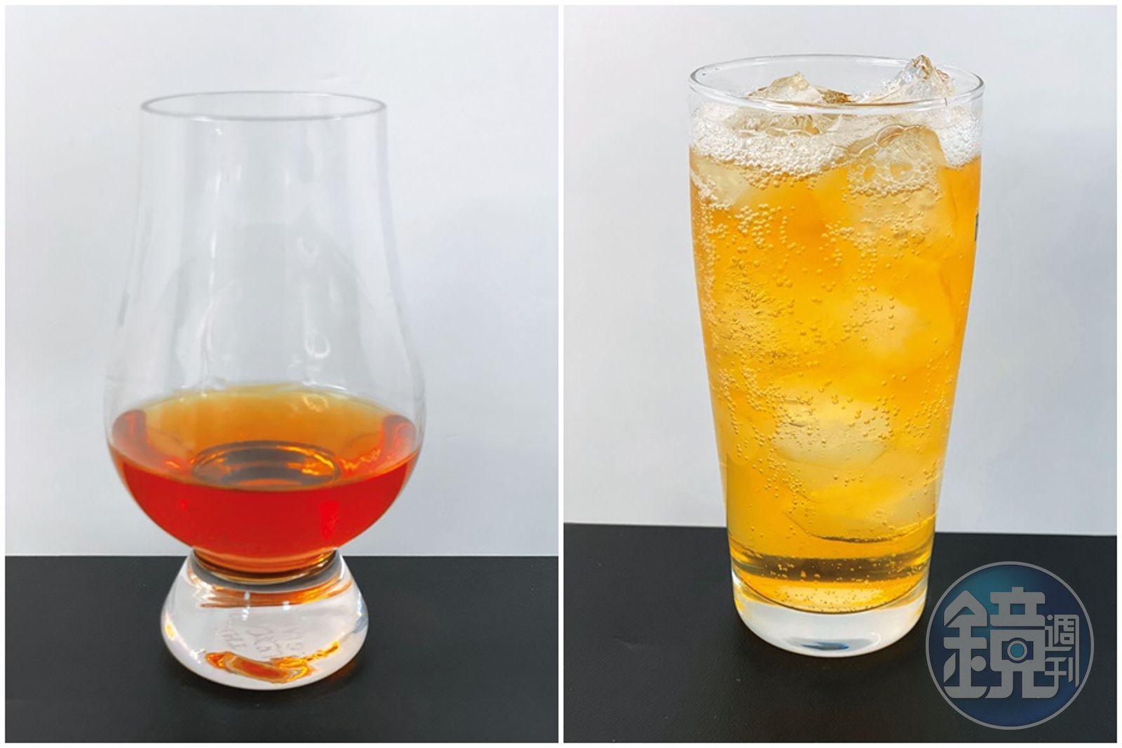 說明:喝威士忌若想要炫一點又不麻煩,建議用細長的高球杯喝Highball。先把冰塊加滿杯,倒入威士忌(建議杯高的1/4或1/3),再加入氣泡水或蘇打水,杯口加上一片檸檬或柳橙,也可放上薄荷葉,就是杯清涼一夏的長飲調酒。