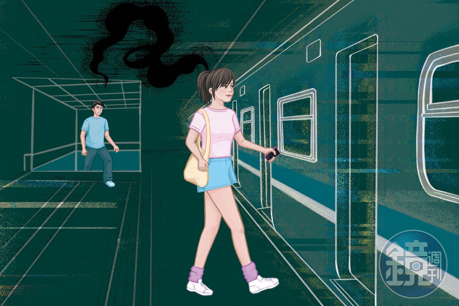 夕梨掛上電話,手機收回口袋,她左右張望;陳信瀚緩了腳步,低下頭,迴避夕梨可能掃過來的目光。再兩個街區就是車站,燈號僅餘十秒,夕梨倏地跑了起來。陳信瀚措手不及,若他也加速,無疑是暴露跟蹤的行跡。他目視著夕梨流星似地踩著斑馬線大步向前,衣襬隨著肢體翻起,坦裸出細白的腰肢。