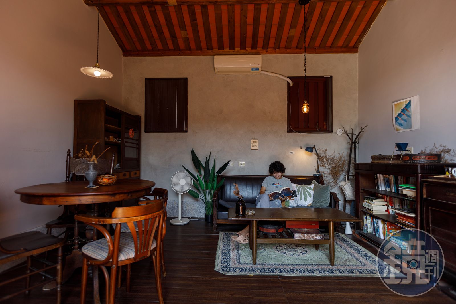 N坦言,古厝其實很難擺設,訣竅是「要順著屋子」,尤其金門古厝的色彩很飽和,跟許多台灣常見的老屋非常不同。比如歐厝66號「私宅」牆面是素色,不需要太多家具;但73號「合院」因為下層是紅磚,屋頂又挑高,因此他擺了許多家具,甚至鋪上地毯,才讓這裡有家的溫度與舒適感。