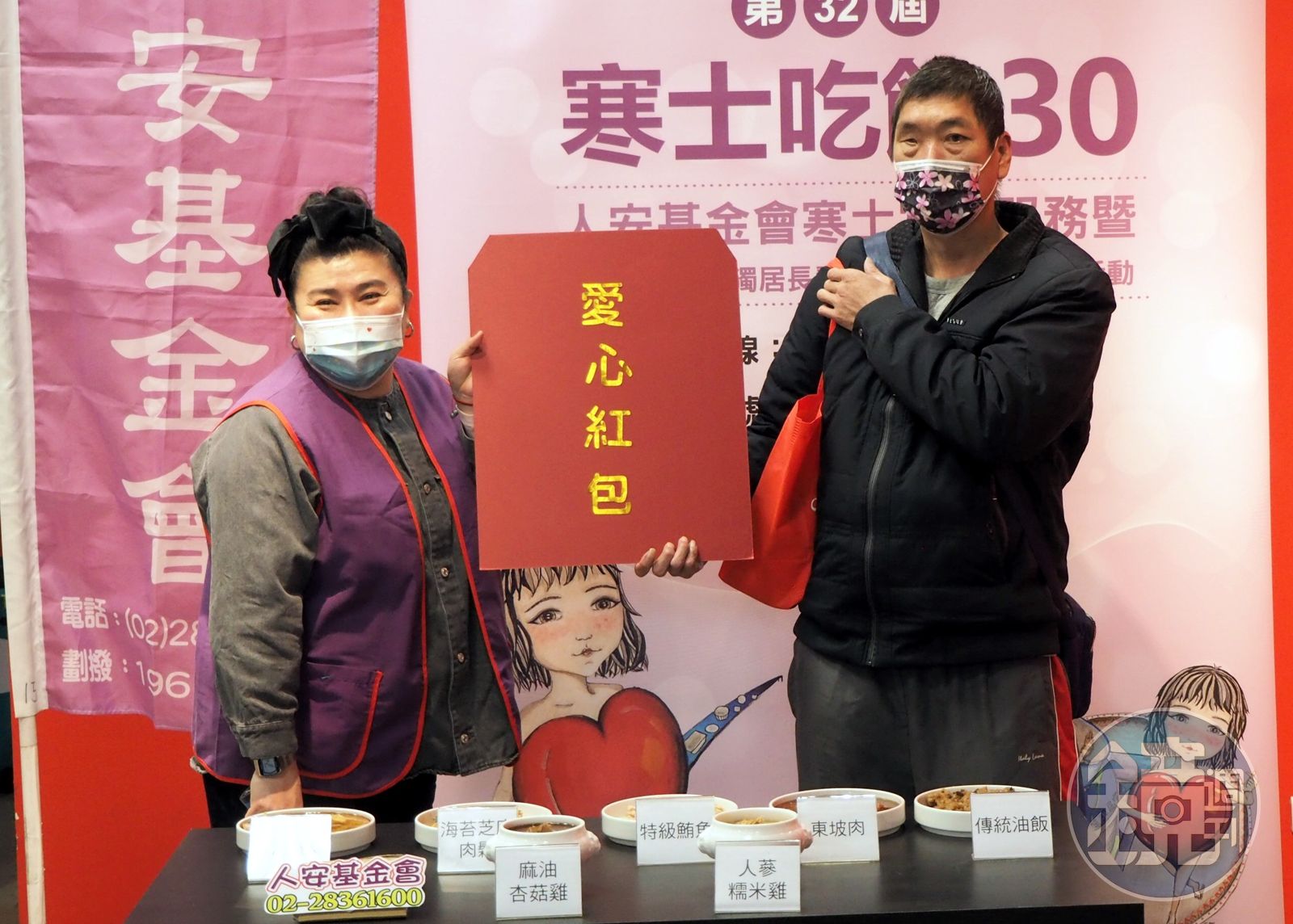 林美秀將年禮及應急紅包親手交給寒士阿偉。(人安基金會提供)發布時間:2022.01.19 18:54 臺北時間