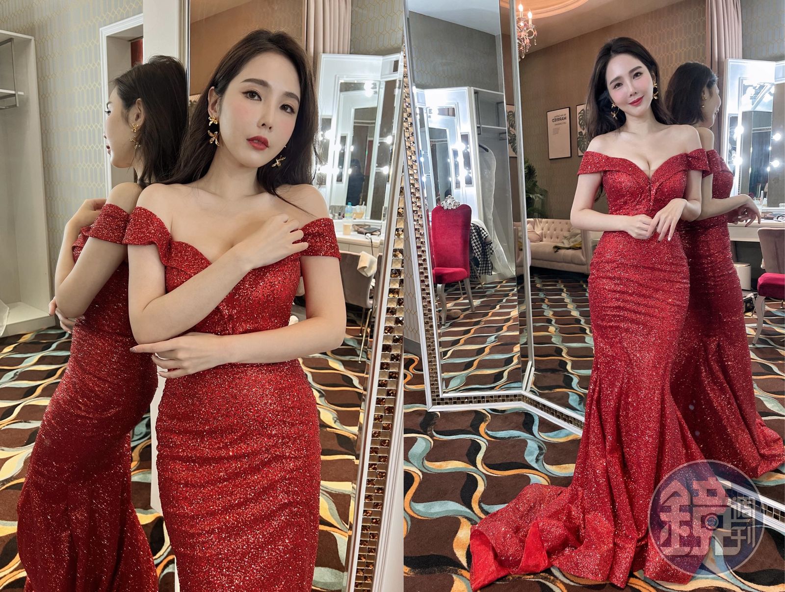 朱琦郁身穿紅色小禮服主持尾牙,將好身材展露無遺。(朱琦郁提供)發布時間:2022.01.20 12:28 臺北時間