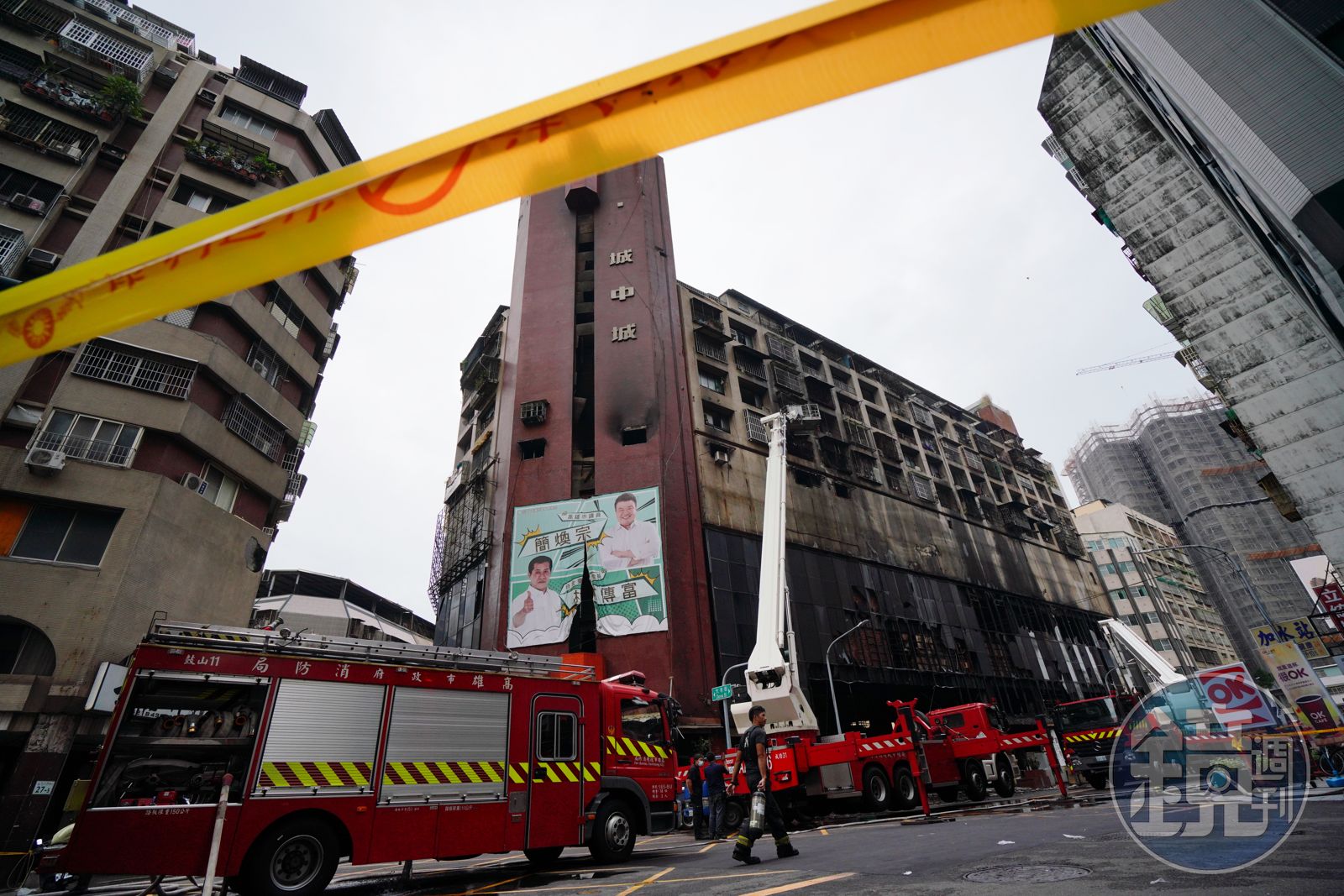 去年10月14日凌晨3時許,高雄城中城大樓燃起熊熊大火,大批消防員前往救災,不過當時火勢已相當猛烈,加上城中城消防設備不完善、逃生動線等問題導致救災不易,直到凌晨4點39分才控制火勢,上午7點17分才完全撲滅,造成46死、43傷。