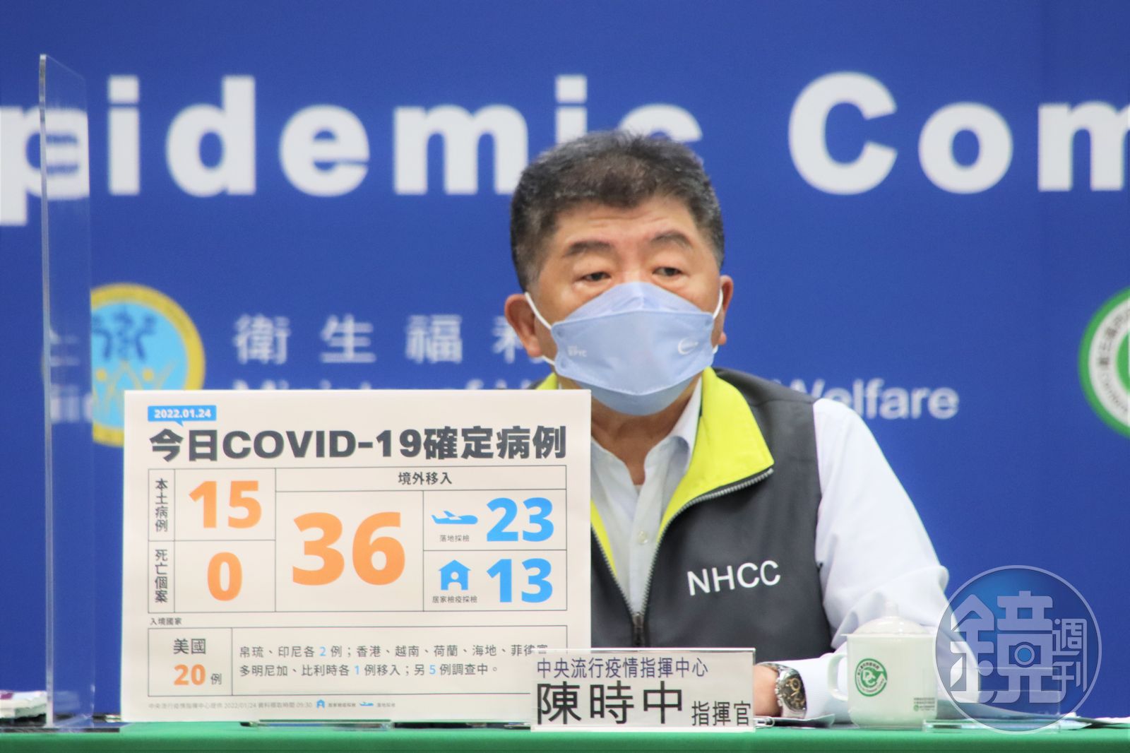陳時中說明國內疫情狀況。(指揮中心提供)發布時間:2022.01.24 14:38 臺北時間