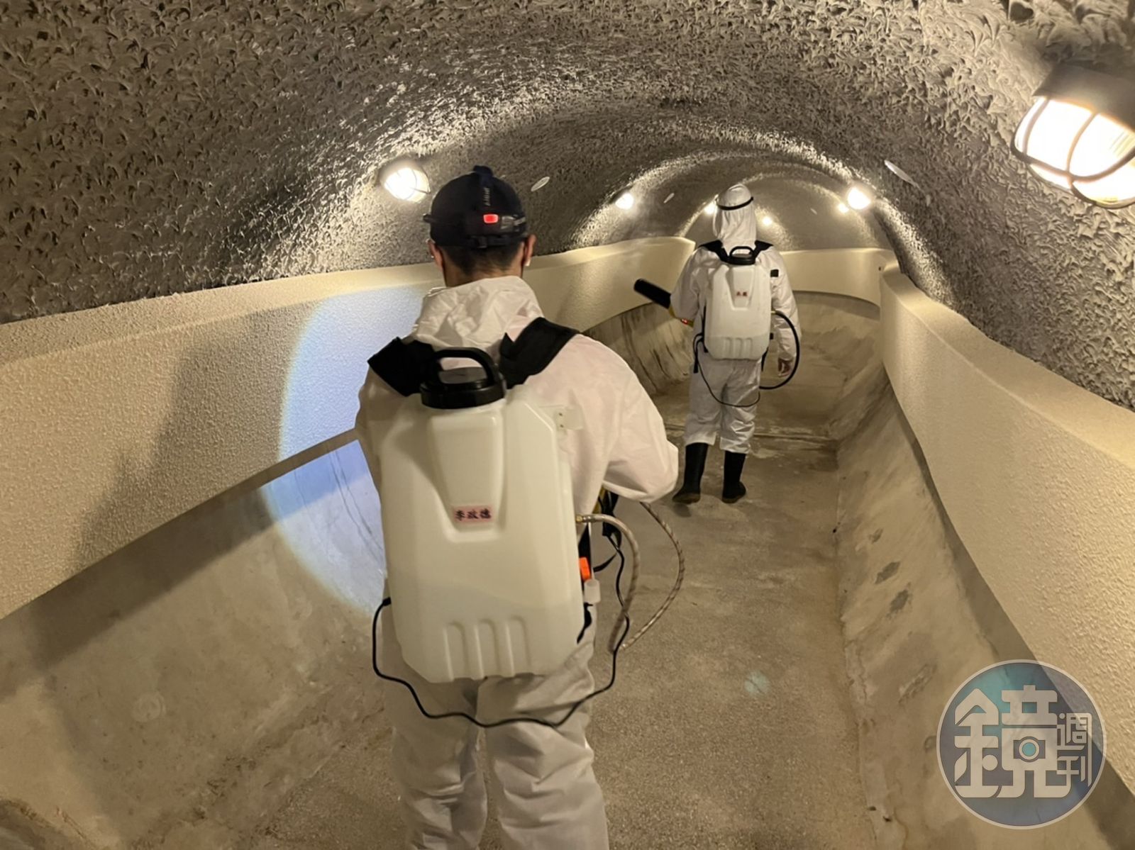 圓山飯店在遊客眾多的密道進行清消。(圓山飯店提供)發布時間:2022.01.24 09:45 臺北時間