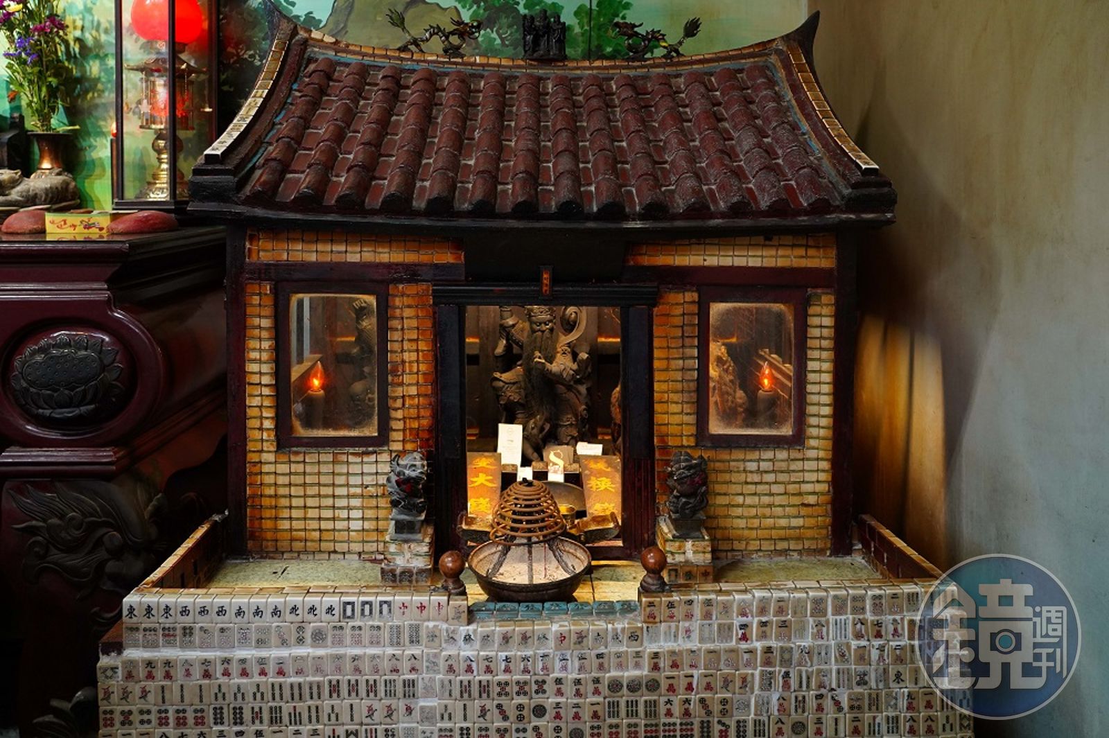 其實大眾廟還有一個十分特別的「廟中廟」,一旁的武財神殿裡有一座麻將小廟,據說是民國79年時,一位廟公以約5,000張麻將牌製成,裡頭供奉武財神,由於民眾口耳相傳,愈來愈多信眾來此求取祈求財運、商運順利,甚至會將名片放置在小廟內,成為廟中奇景。