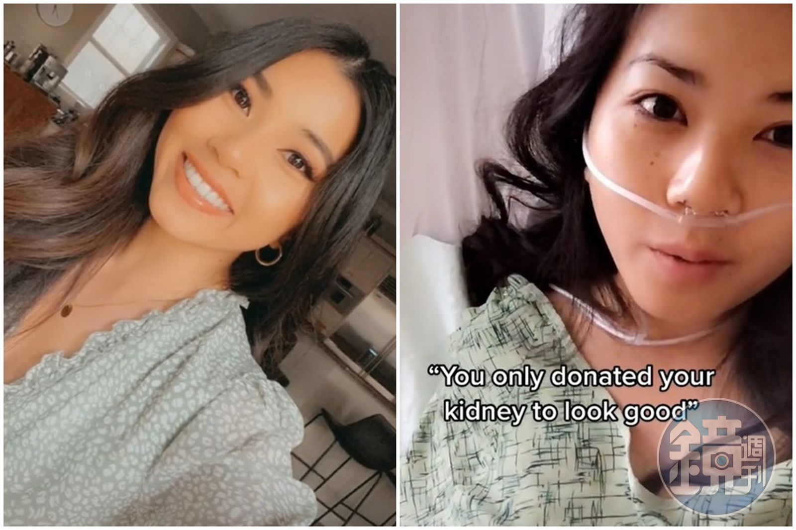 綜合外媒報導,美國女子科琳(Colleen Le)日前在TikTok上傳多支短片,分享她慘遭男友背叛的過程,引起網友熱議。原來,科琳5年前為了拯救患有慢性病的男友,捐出自己的腎臟,本以為兩人關係會因此更加緊密。沒想到手術完7個月後,男友到拉斯維加斯參加「單身派對」回來,竟向科琳坦承自己出軌了,令科琳難過不已。儘管兩人會此有過多次爭吵,最後科琳仍選擇原諒男友,再給他一次機會。