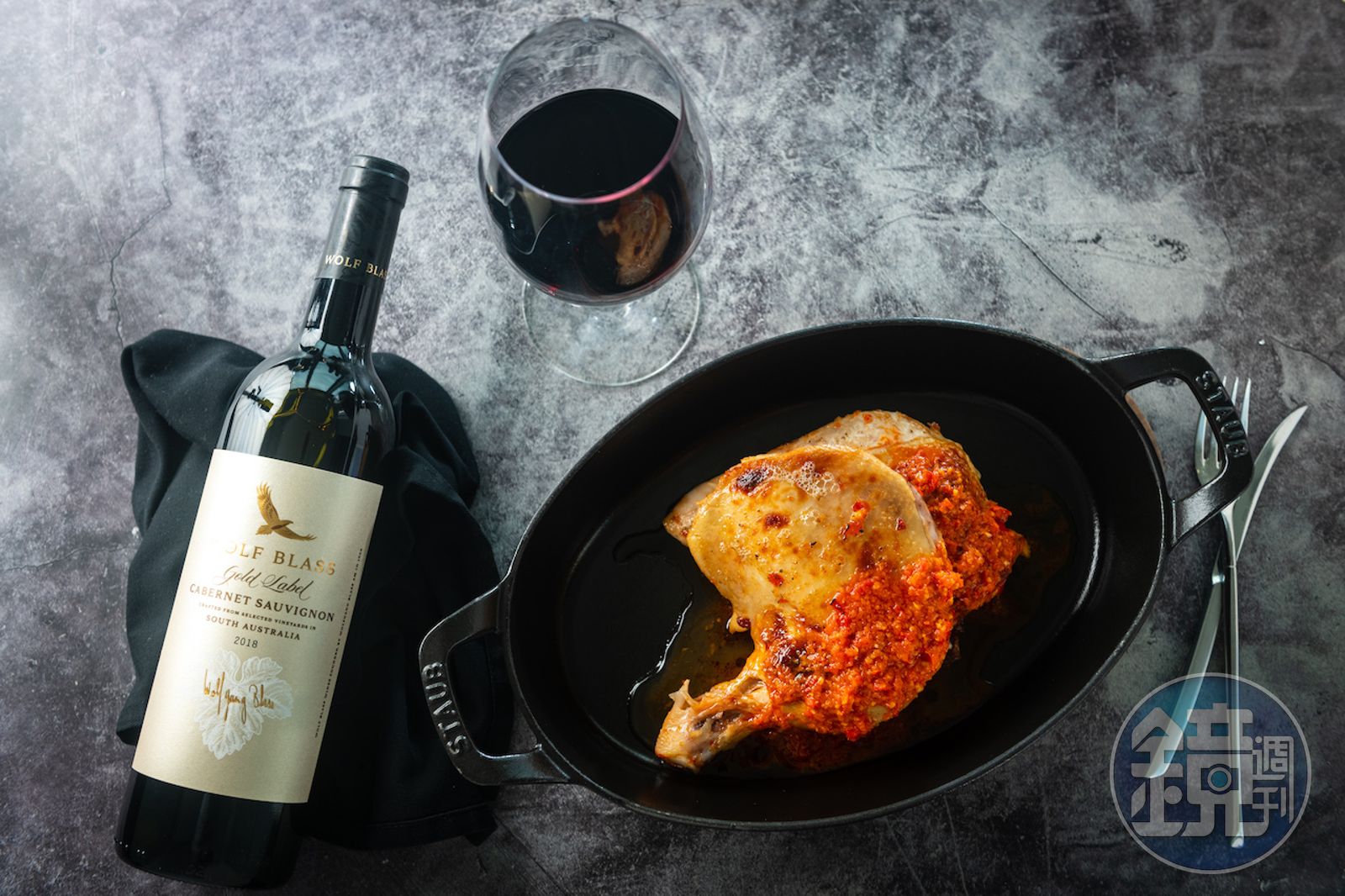 Xavier挑選了酒體中上等級的「禾富 金牌卡本內紅葡萄酒」來接招,他分析:「卡本內葡萄品種通常有著深色漿果風味,單寧成熟圓潤,適宜搭配風味飽滿的料理。」這款酒裡帶有蜜餞甜味,綿延了霹靂雞的酸韻,「同理可證,也可駕馭像糖醋里肌、京醬肉絲等酸甜奔放的菜餚。」Xavier同場再加映。