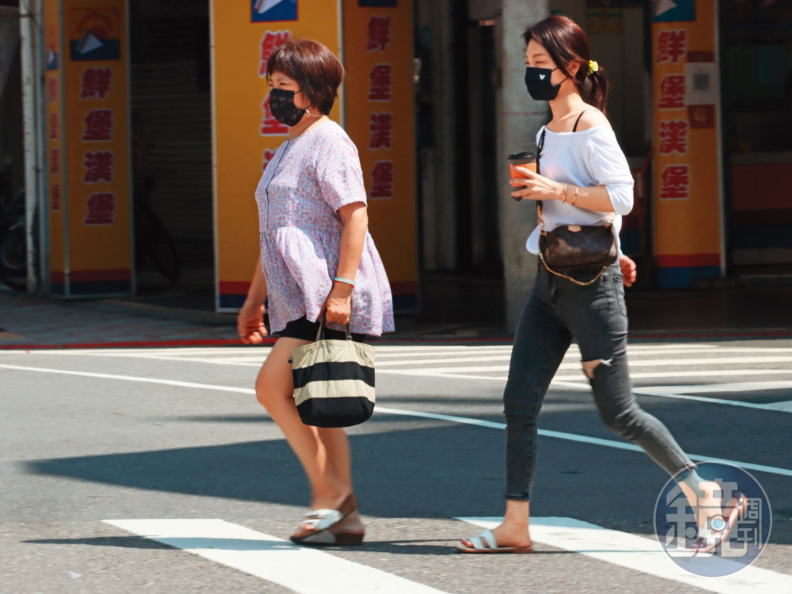 重點是,姊姊在準備過馬路前,使出一根顯眼的中指按了按扭,試圖讓號誌燈變色,雖然露了細肩帶,但畫面散發出鄰家女孩氣息,不像媽媽過街時走路有風,呈現類似「下衣失蹤」韓系流行風潮,也是有在辣的。