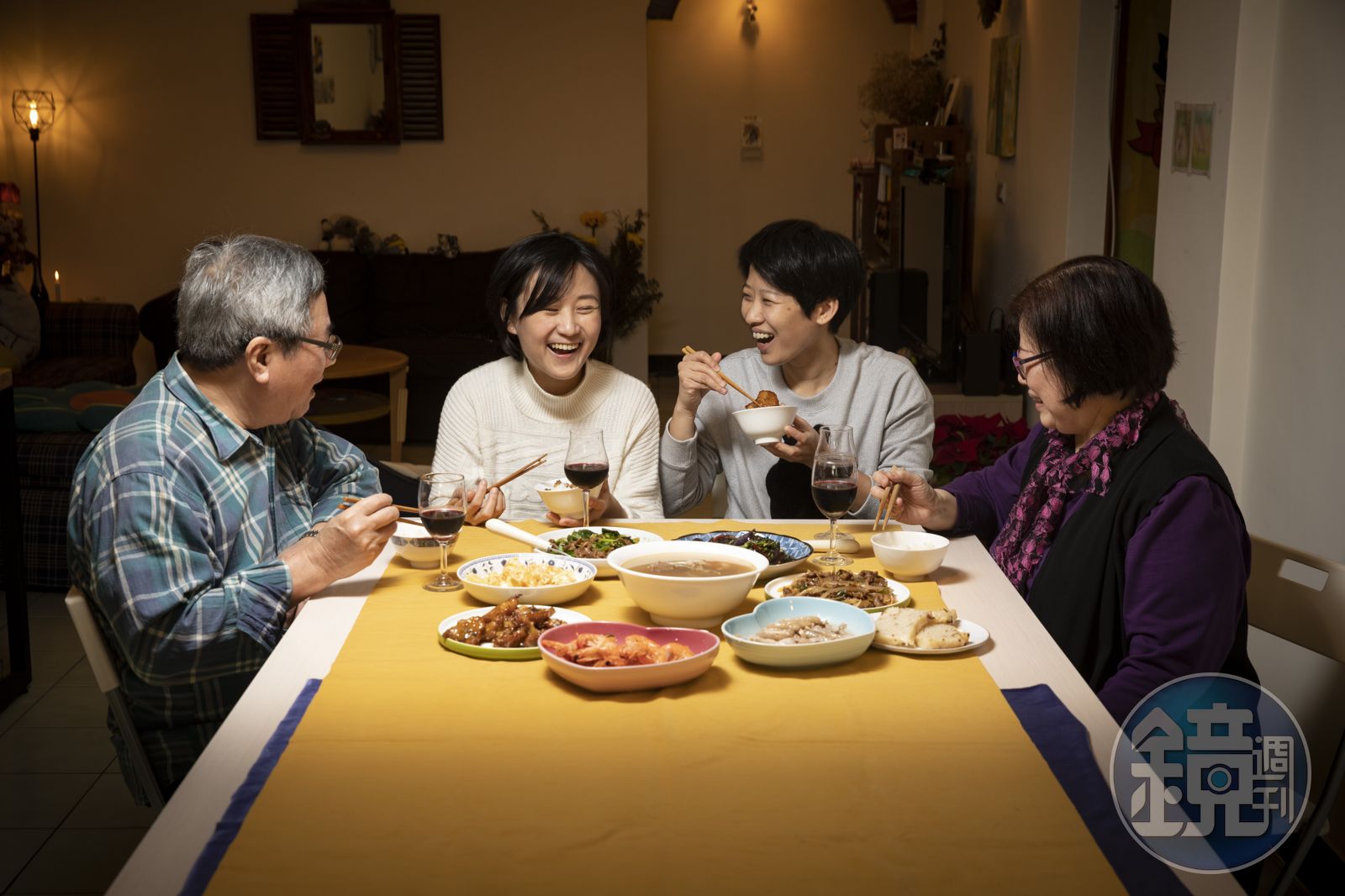性別氣質較陽剛的江映帆記得,那天中午飯局上,她努力發聲,「我主動說新年快樂,講我們的生活,一一擊破,讓他們知道我們過得很好。他們家族還是有點逃避大女兒已婚,而且是同性伴侶。我很強勢去表達聲音,讓他們知道我不是空氣,也不只是陪伴者。」