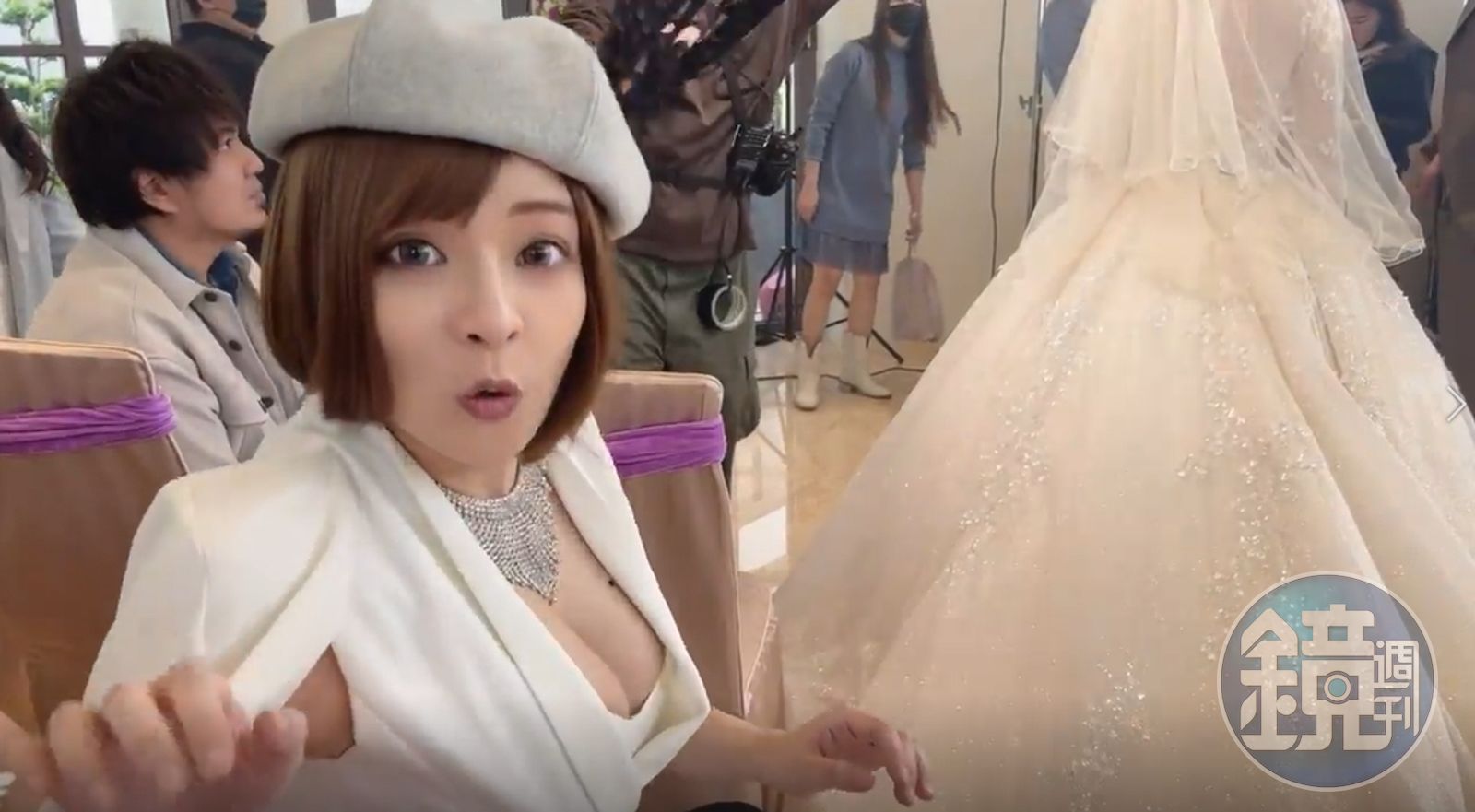 郭鬼鬼今天穿的「婚禮戰袍」雖然不是之前公布的4件禮服,不過同樣展現G罩杯好身材,網友看到影片後,紛紛留言:「妳穿這樣去Sandy場肯定被轟」「你都不怕你被新娘揍 新娘風采都被妳搶走了真是」「阿鬼穿那辣,會搶了新娘風采哦」「鬼鬼的眼神真的又大又圓…我真的是在說眼神」「真的好大好圓,但你不怕被新娘怨恨嗎?」「鬼靈精怪的鬼鬼…還給我走錯場咧 笑翻」。
