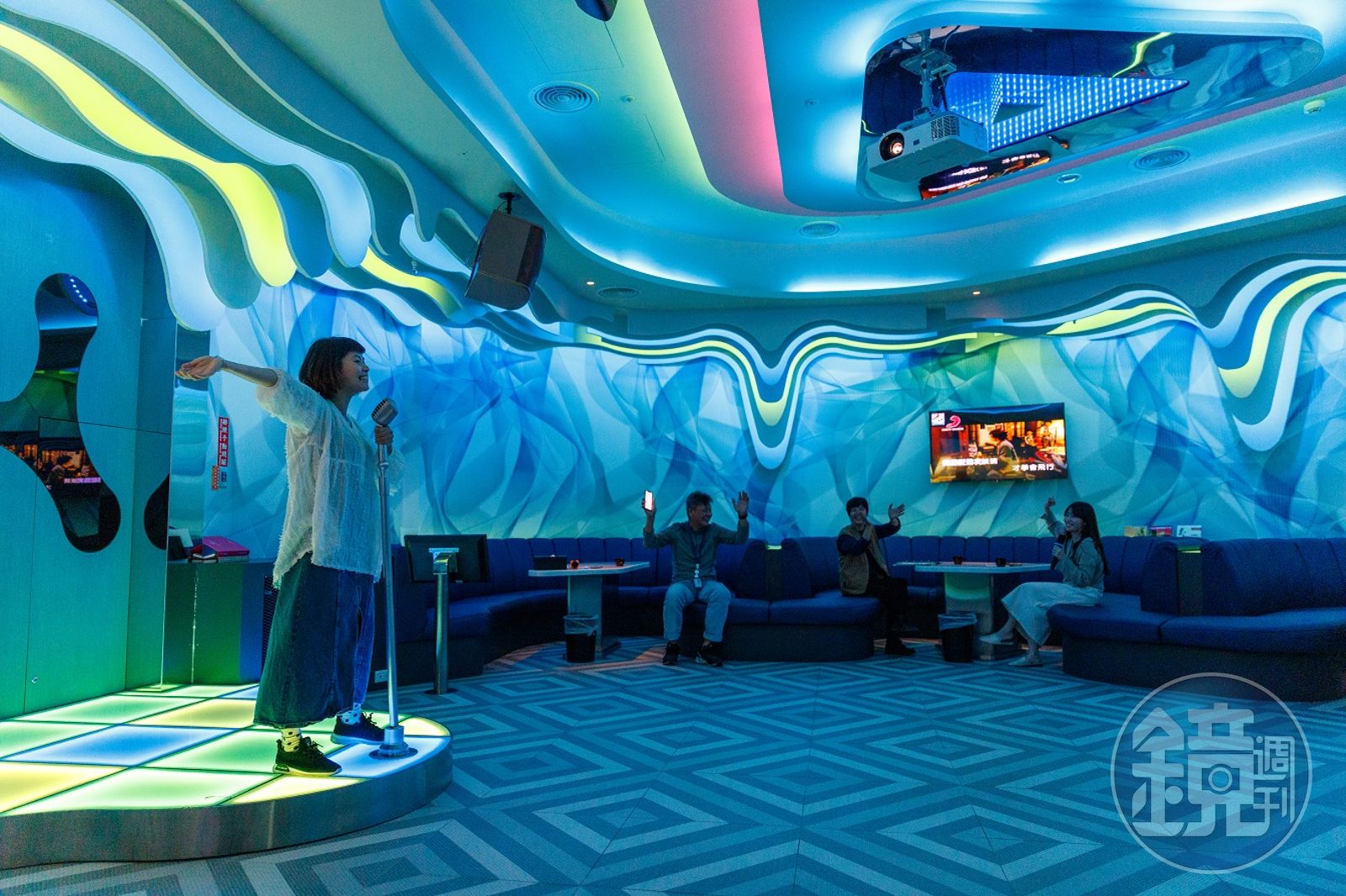 能夠容納25至30人的錢櫃大型包廂,顏色也是海洋藍。發布時間:2022.02.04 06:57 臺北時間