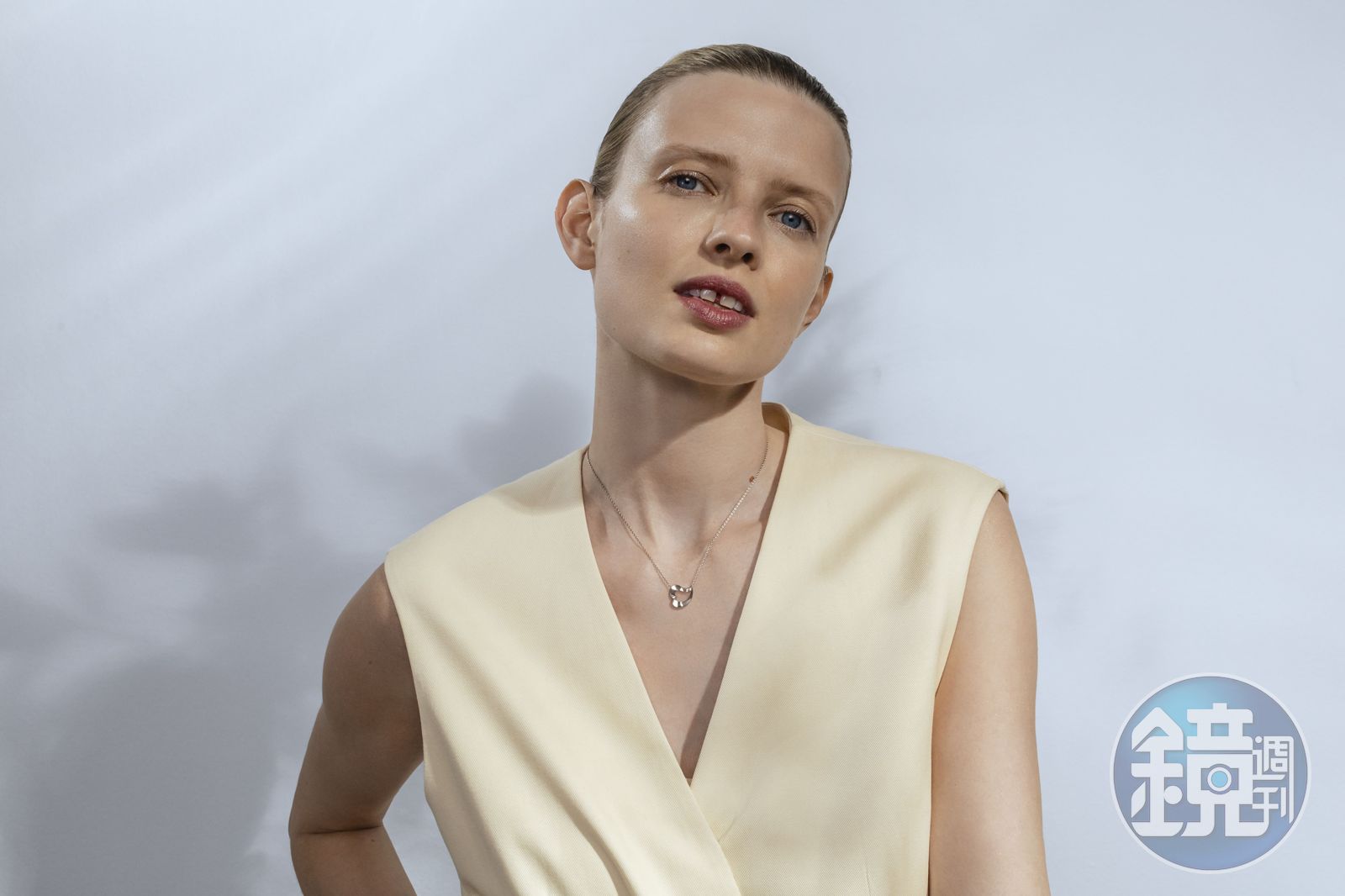 全新的喬治傑生之心項鍊以「微型藝術結構」賦予愛心符號不同以往的嶄新姿態,突破常規的不對襯弧形分割設計,結合精巧細膩的鏤空式造型,展現立體的二元性,流暢線條引領出媲美雕塑品般的藝術美感,猶如一只輕盈靈動的落葉,降落在鎖骨之處烙下璀璨印記,於頸間留下一片名為愛的風景。