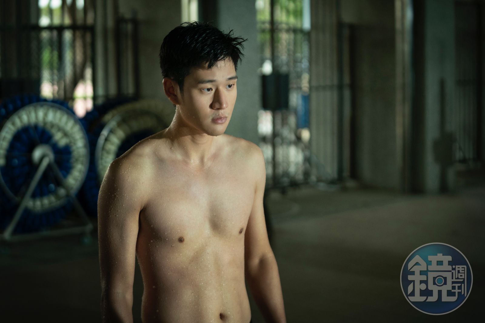 周興哲在片中大方秀出好體格,但其實他還刻意不練身材,仍可看見隱約的人魚線及腹肌。(華映)