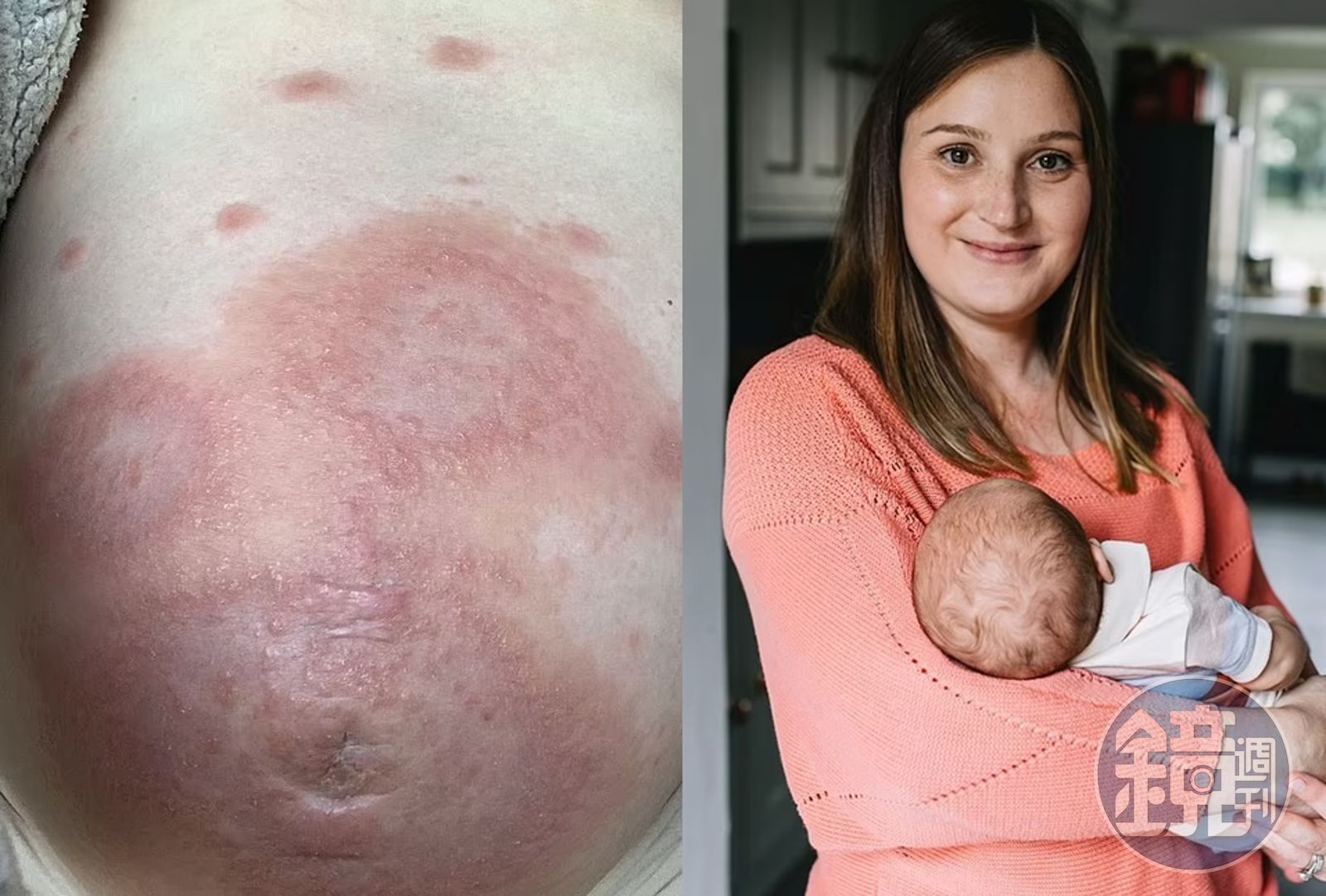 更慘的是,菲歐娜再生產前2日冒紅斑情況更加劇烈,在她分娩後24小時,這些紅斑變成大面積水泡,雖然順利生下兒子,但身上刺痛的皮膚,讓她抱著心愛的兒子時也能強烈感受到不適,「抱著兒子就讓我很痛苦。」