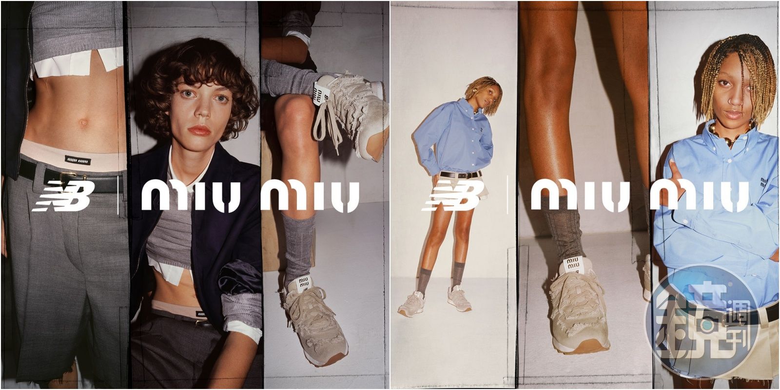 設計師Miuccia Prada攜手美國經典標誌性品牌,以獨特方式將1980年代推出的New Balance 574運動鞋重新演繹,打造出全新MIU MIU 2022春夏系列商品。 New Balance 574系列鞋款展現了MIU MIU的美學代碼,透過解構及自然毛邊強調鞋款原始構造,全系列共有白色、卡其色及深藍色可供選擇。鞋款於義大利製造,New Balance與MIU MIU標誌於鞋舌處堆疊,象徵機能運動鞋的重新詮釋,以MIU MIU的叛逆奢華語言重新詮釋超過30年的經典歲月之作。