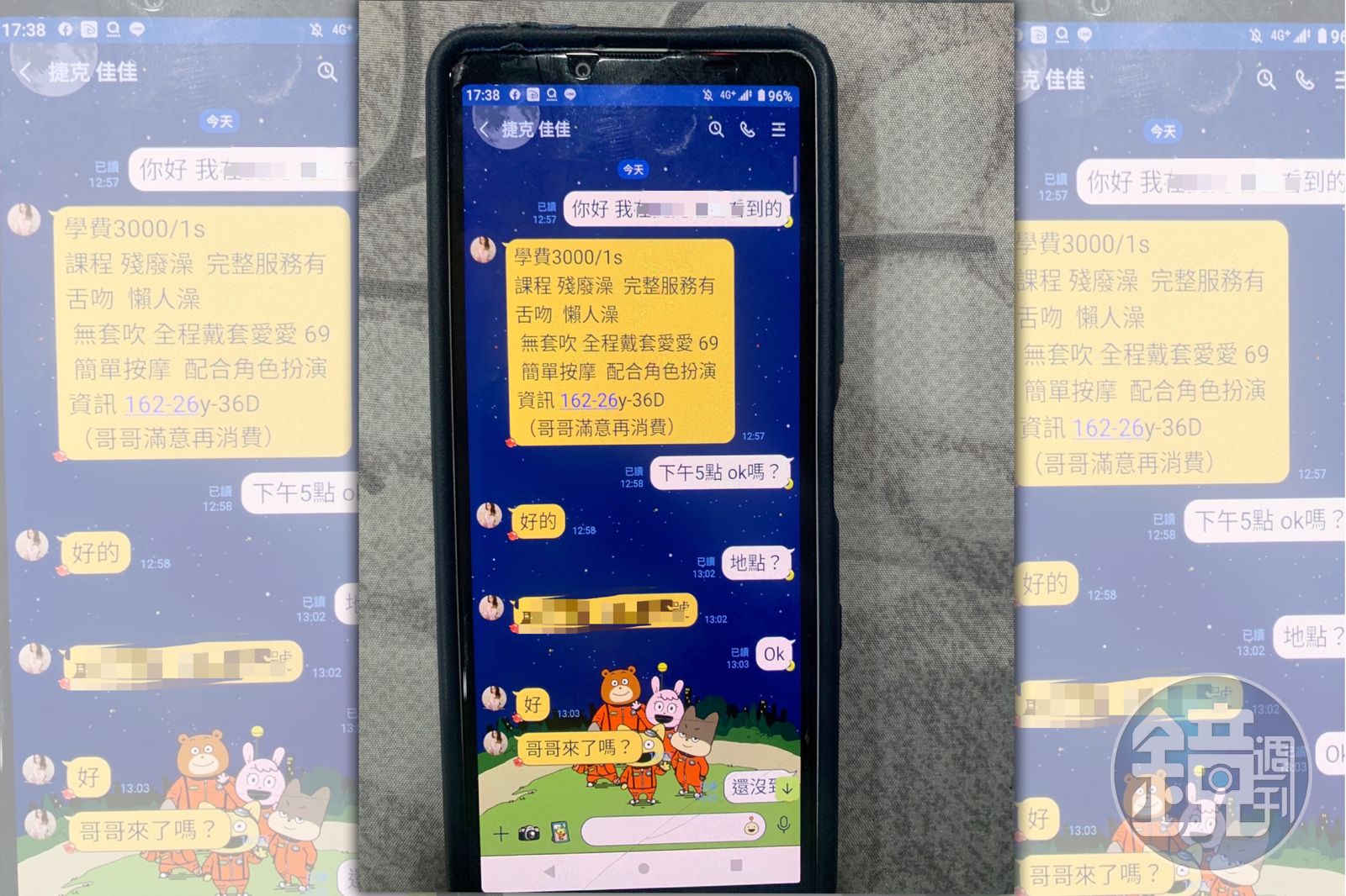 吳女供稱套房是朋友所租,她在與尋芳客的聯絡訊息中,載明「學費3000/1s」、「課程」含「殘廢澡」、「角色扮演」等服務,當尋芳客到套房前,便提供房間電子鎖密碼,從事性交易。警方查出吳女是逃逸移工,依違反社會秩序維護法查辦,並將她轉送移民署收容。