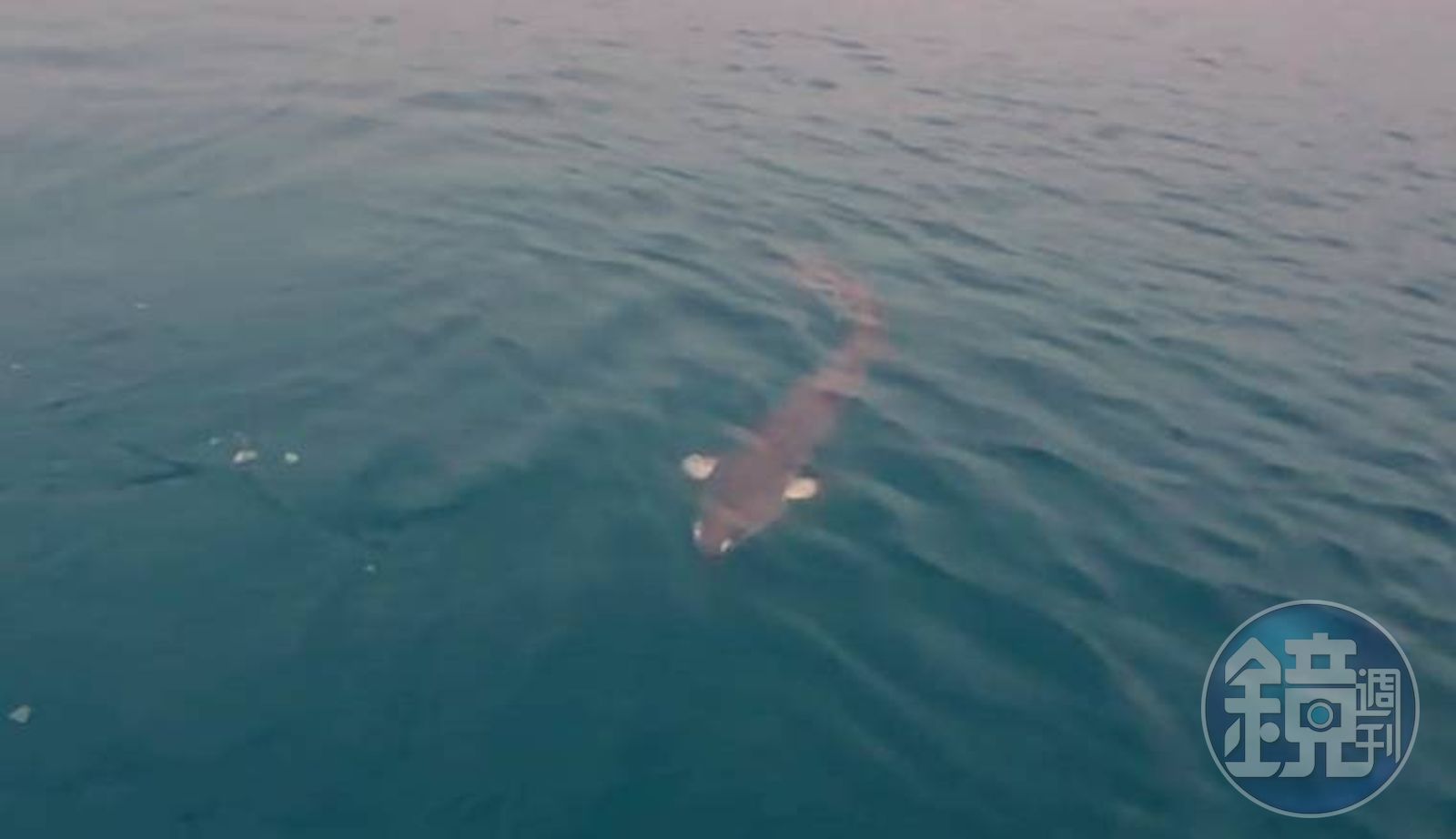 日月潭驚見目測身長應有250公分以上的巨魚。(翻攝畫面)發布時間:2022.02.15 06:57 臺北時間