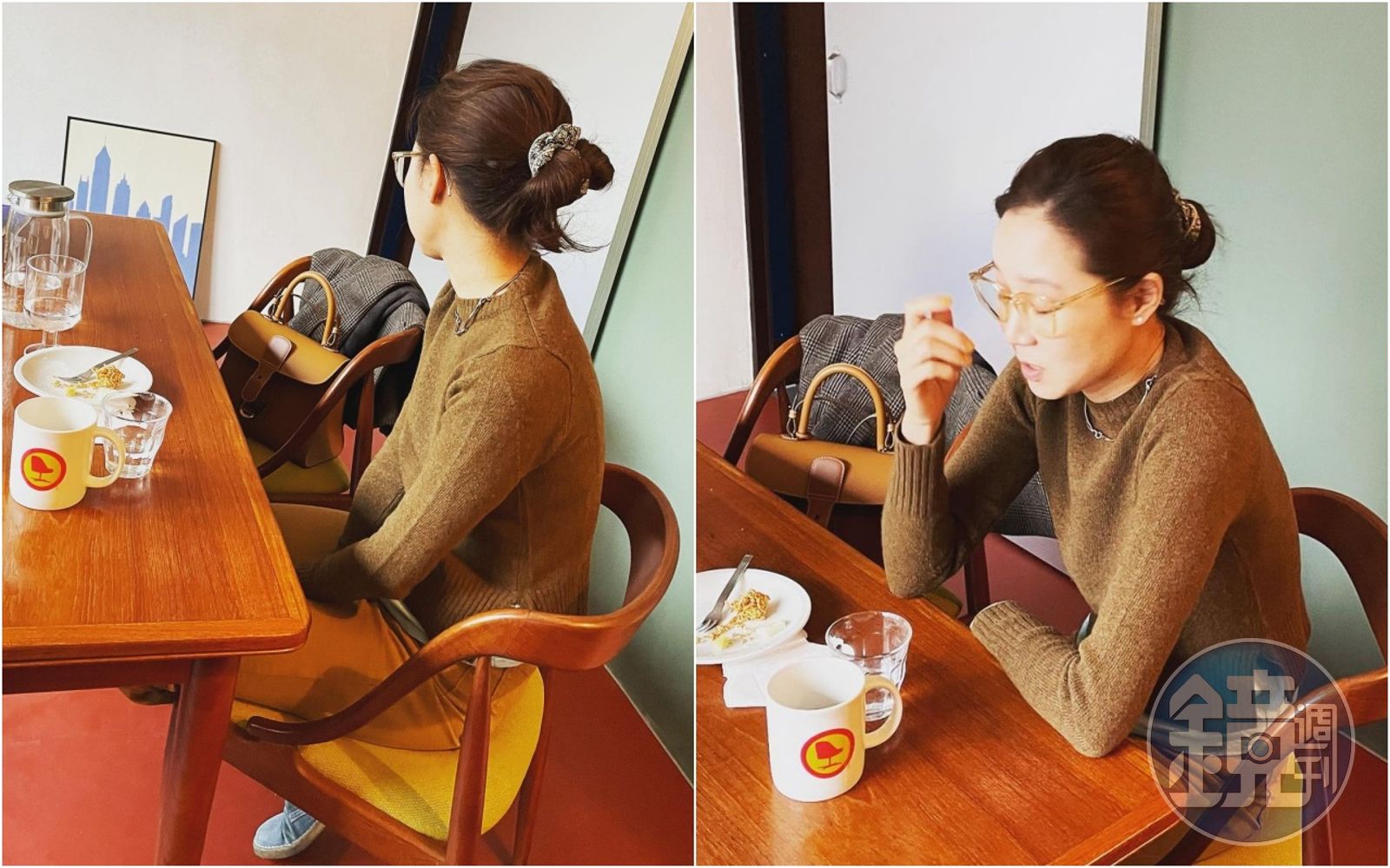 孔曉振素顏大腸圈綁髮look 不忘與愛牌DELVAUX並肩喝咖啡