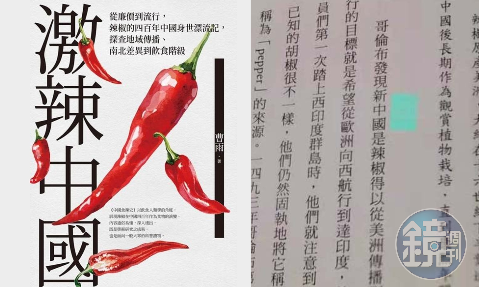 曹雨該書原本在中國以《中國食辣史》出版,其中有部分篇章談及辣椒與共產黨、文化大革命的飲食文化,都被中國出版方刪除,讓他曾憤懣不已,本來以為在言論自由的台灣能讓作品用更理想的面貌問世,沒想到又是這樣的殘樣,讓他相當無奈,「如今的海峽兩側,真是各有各的崩壞,壞得爭奇鬥豔」。