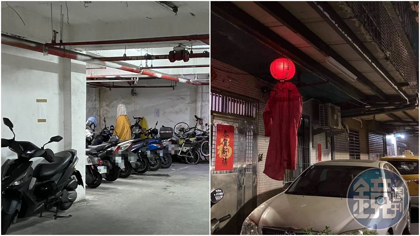 由於連續數日雨下不停,不少機車族就會發揮創意力晾雨衣,將雨衣擺成各種懸吊或不符合人體工學的扭曲姿勢,不過這就苦了毫無心理準備的用路人,讓溼冷天氣加上無人的停車場仿佛試膽大會一般。