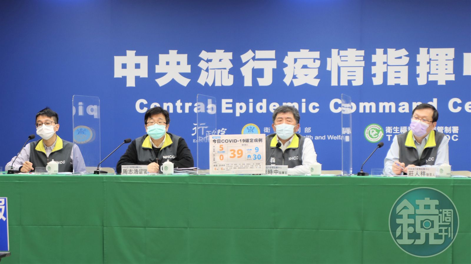 指揮中心宣布今日新增5例本土案例均為居隔期間陰轉陽,陳時中說明,4例為唱歌聚餐的宗教團體群聚所衍生的新北市個案,包含4歲男童(案19927)的3名家人(案20217、20218、20234)及曾參加吃飯唱歌聚會新店30多歲男性(案20100)的哥哥(案20233);另1例則為與高雄煉油廠和紅茶牛奶店群聚相關,為鋼鐵工程師(案19732)的台南友人(案19862)妻子(案20216),也是案19949和案20164的母親,目前該家庭一家5口染疫。