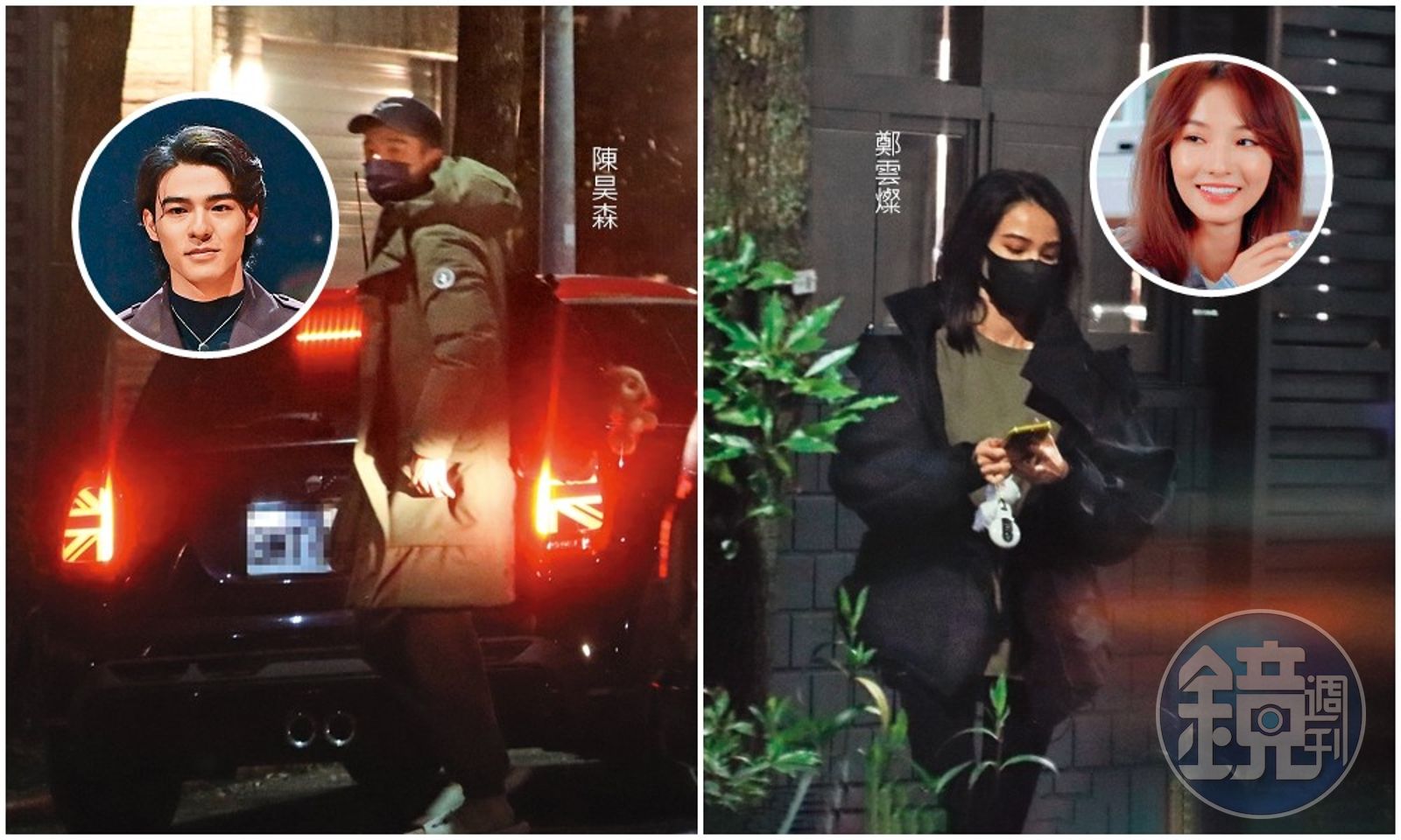 到了近9點40分,一輛黑色的廂型車出現,然後一名戴著黑帽、穿著大衣的男子下車,細看就是鄭雲燦的男友陳昊森。只見男生走往女人車旁,正要準備上車時,忽然雷達開啟,眼神掃射一圈後發現跟拍,顯得有點受驚。
