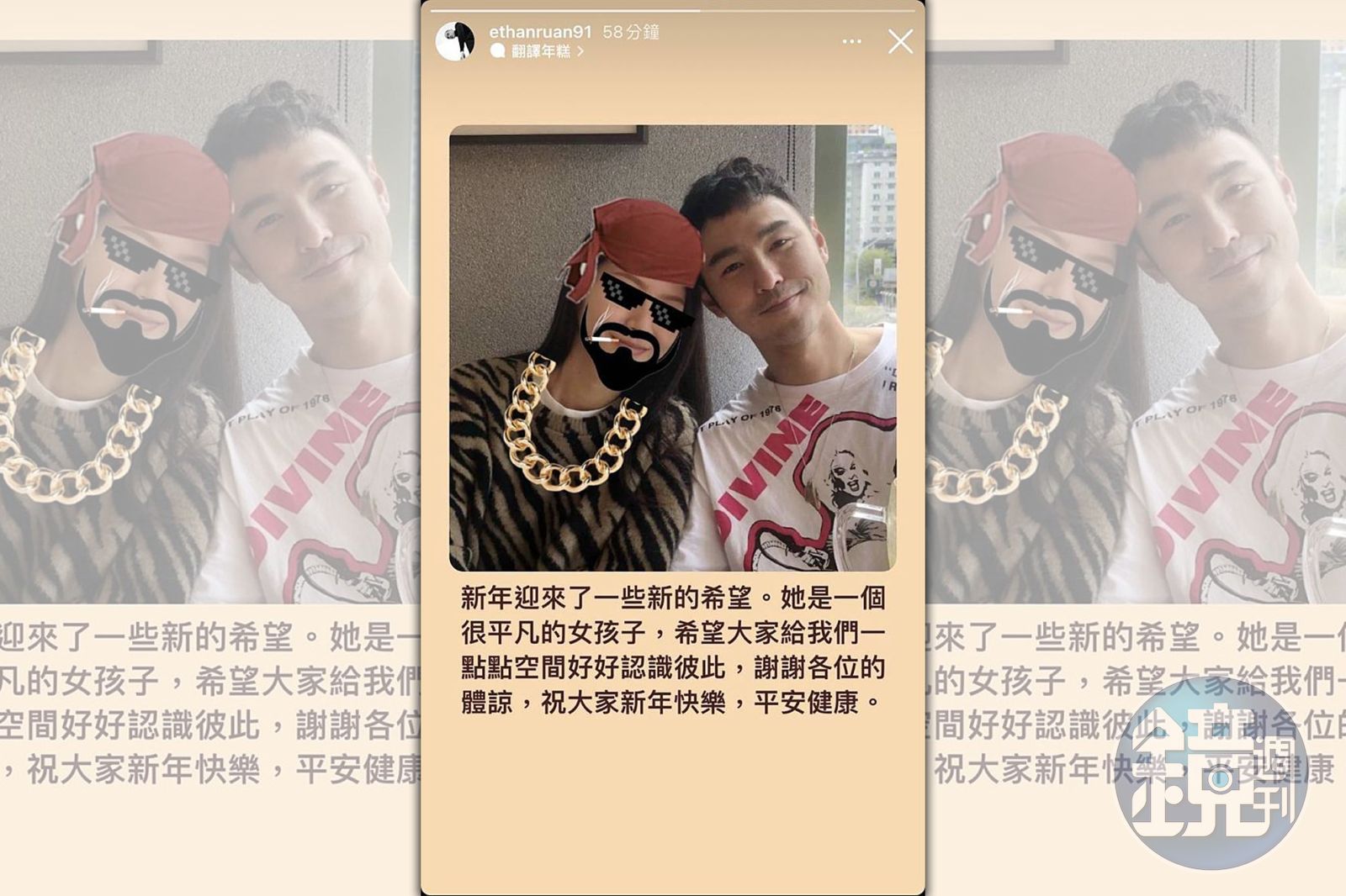 阮經天(右)選在大年初五公開有了新歡,為了保護對方還把她的臉做塗鴉處理。(翻攝阮經天IG)發布時間:2022.02.23 12:20 臺北時間
