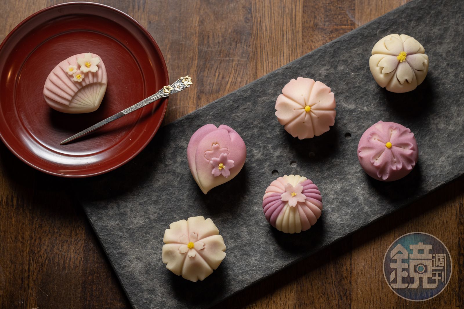 敏銳感知季節變化的日式美學,也反映在和菓子上,一顆顆以櫻花為意象的「上生菓子」上桌,有如在盤中盛放的風物詩,真教人不忍下手破壞它。