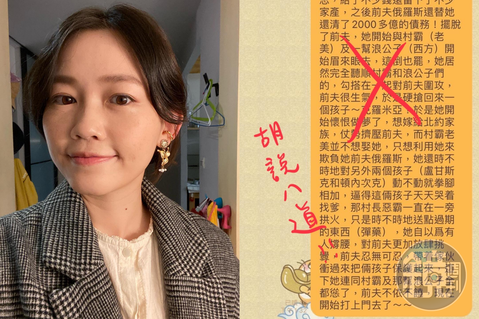 近日LINE傳出一則烏俄戰爭如同夫妻離婚之訊息,內容指出,烏克蘭與俄羅斯就像是在20年前離婚,幾個孩子歸前妻烏克蘭所有,而前夫俄羅斯「很夠意思」給了前妻金錢援助幫還債2,000多億,怎料擺脫債務後前妻就開始勾搭村霸也就是美國,甚至和一幫西方國家浪子眉來眼去,一同圍攻前夫,因此俄羅斯硬搶了一個孩子克里米亞回來。(2014年普遍被國際認為是烏克蘭領土的克里米亞公投入俄,俄羅斯也隨即占領該地,導致該地爆發動亂)